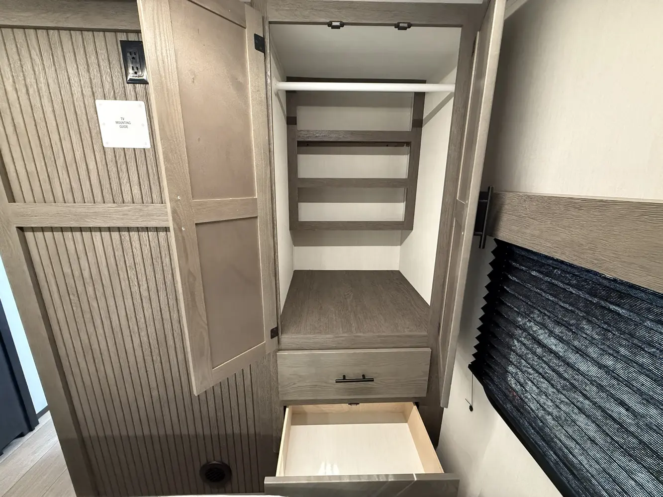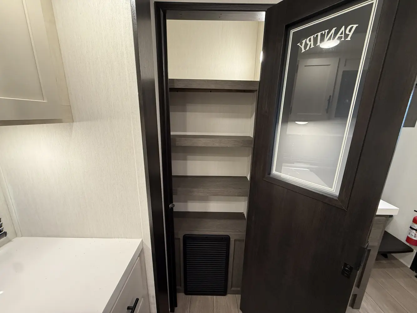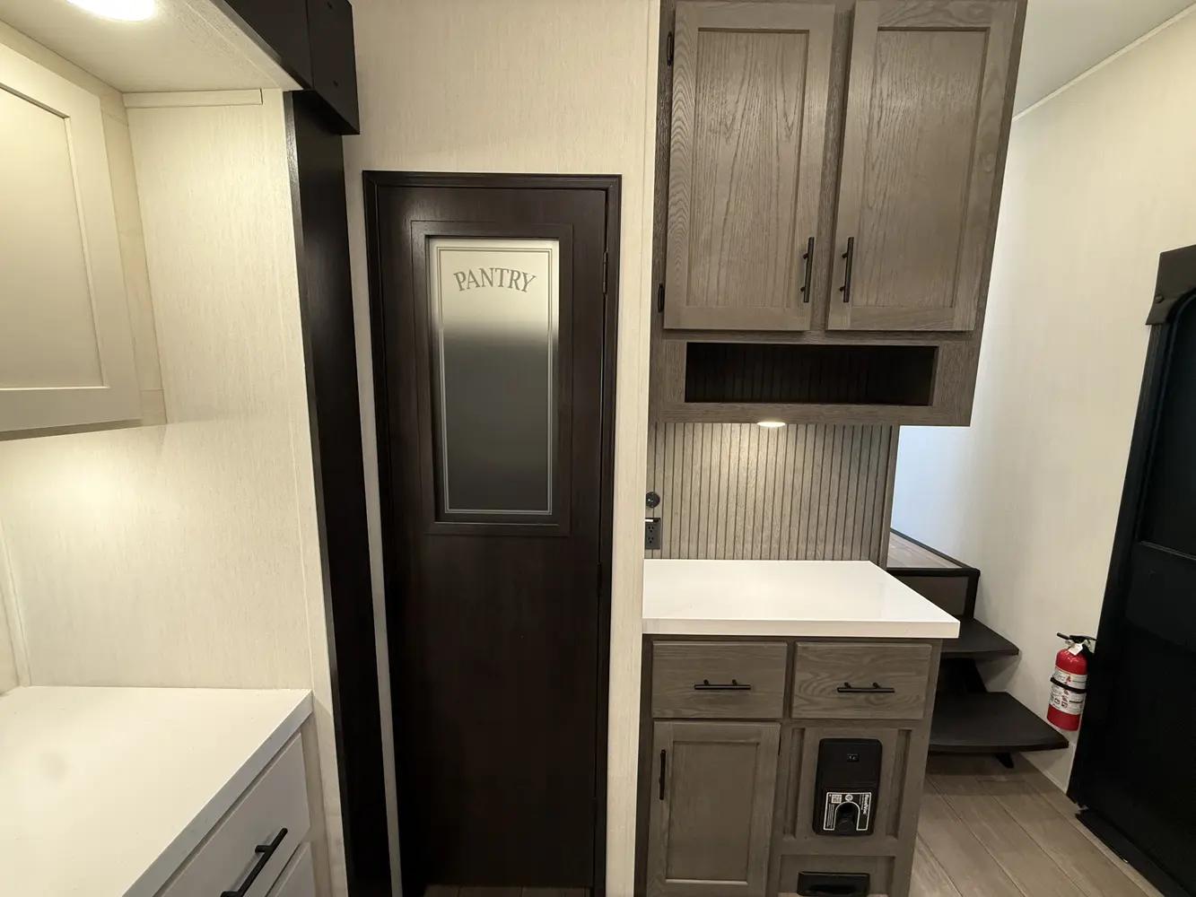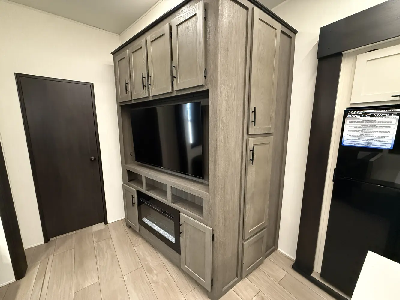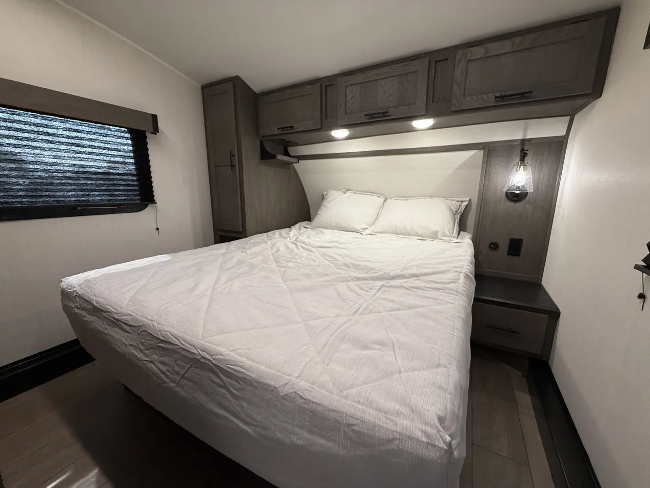 The Arctic Wolf 331BH by Forest River offers a two-bedroom design in a relatively short 38 ft 3 in form factor. In the rear is a half bathroom, 54x74 bunk, built in wardrobe storage and a 60x80 loft bunk overhead. Chef's will appreciate the island kitchen that features a 12-volt refrigerator, microwave, oven, trash can drawer, breakfast hutch and dinette that converts into a bed. Up front is a queen bed, two wardrobes and a full bathroom.