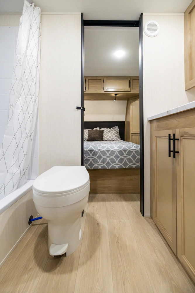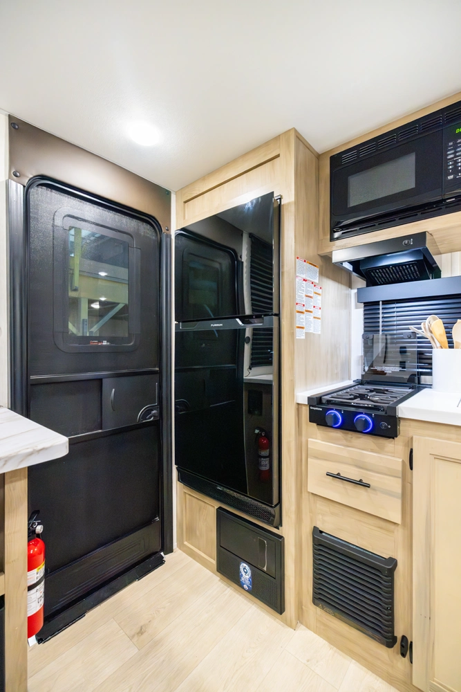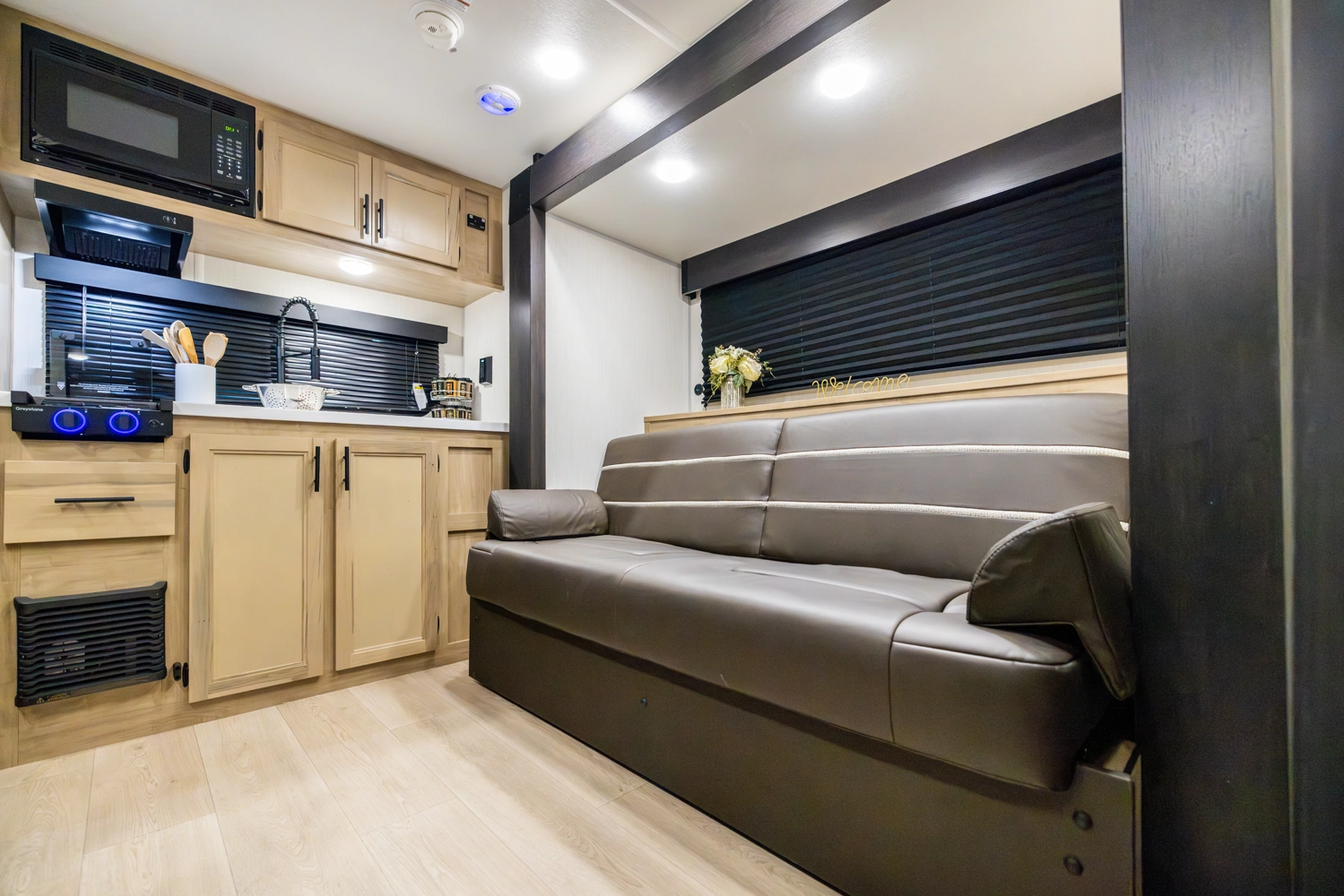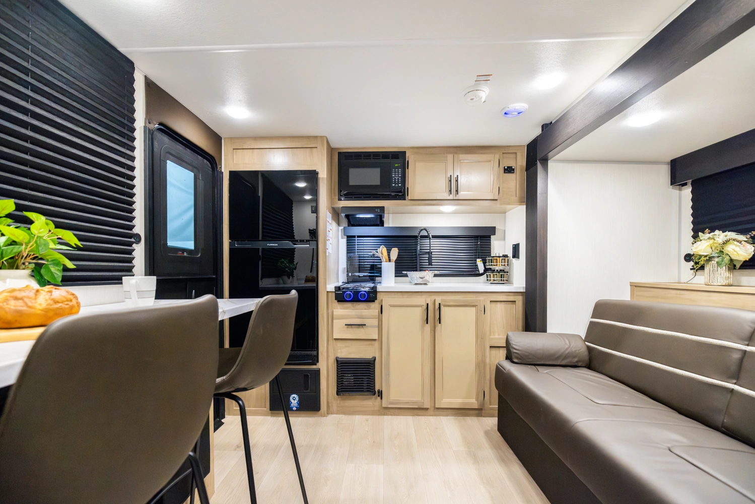 The Wolf Pup 17SCBL makes the most out of a small 23ft 10in space with bar style seating in front of a big campsite window. Also featured is a well-equipped rear kitchen, full bathroom and a separated bedroom with a door.