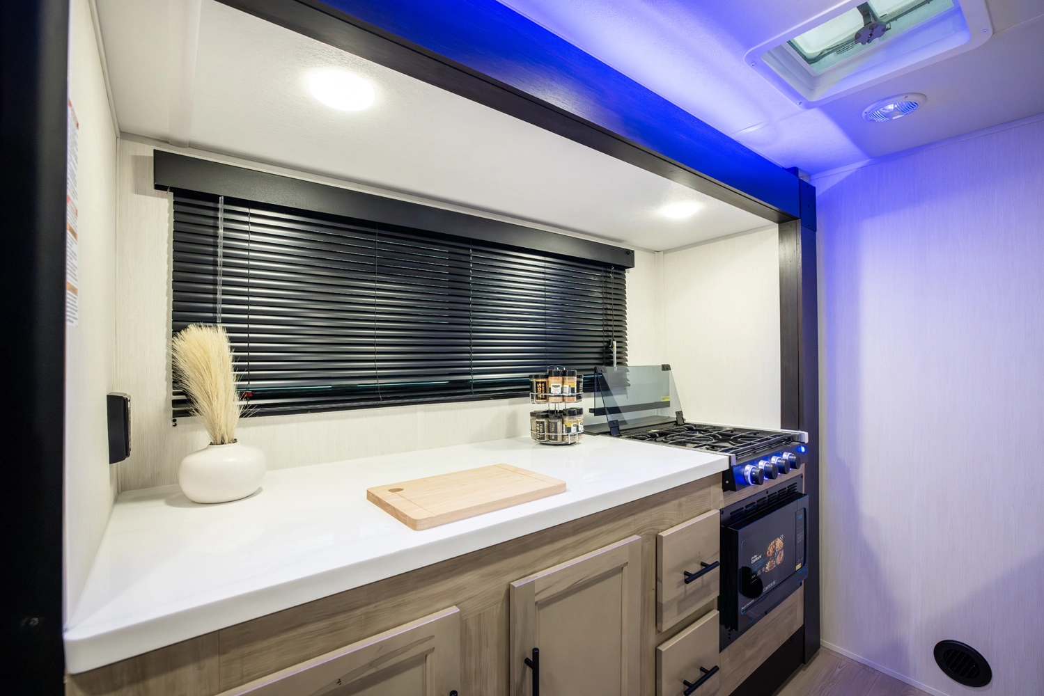 The Black Label version of the Grey Wolf 27LH is an intelligently designed entry level travel trailer designed for modern camping. Notable Black Label upgrades include fiberglass gel coated side walls, frameless windows, thermos-foil arctic insulation and solid surface countertops.