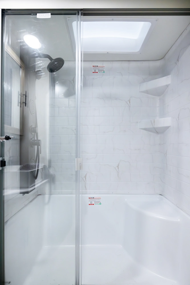 The triple slide is the perfect unit for affordable luxury and livability. The rear entertainment living room is surrounded by panoramic windows as well as two sofa slide and two recliners. The chef’s kitchen, kitchen bar with stools, and dinette slide with slide out drawers and full door pantry offer meet the needs of any chef. The private master suite completes the interior. Outside enjoy the Cherokee camp kitchen, outside entertainment speakers, and TV bracket under our power awning.