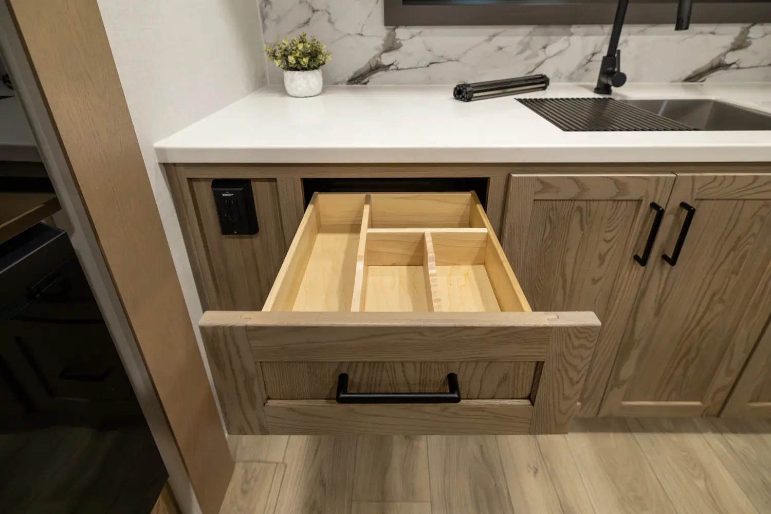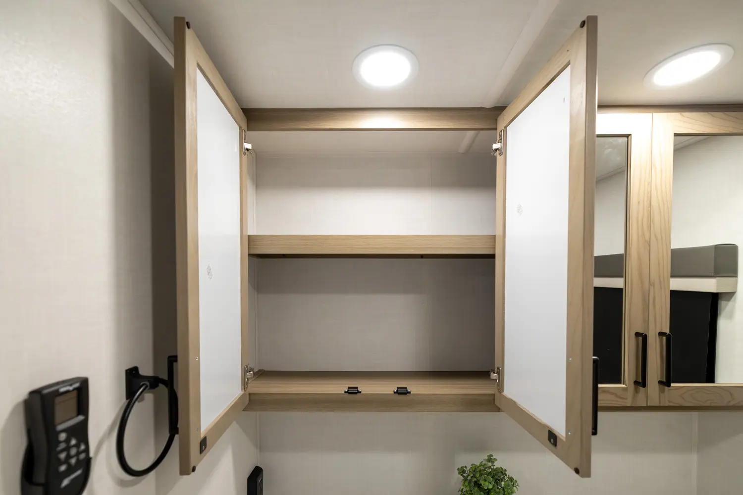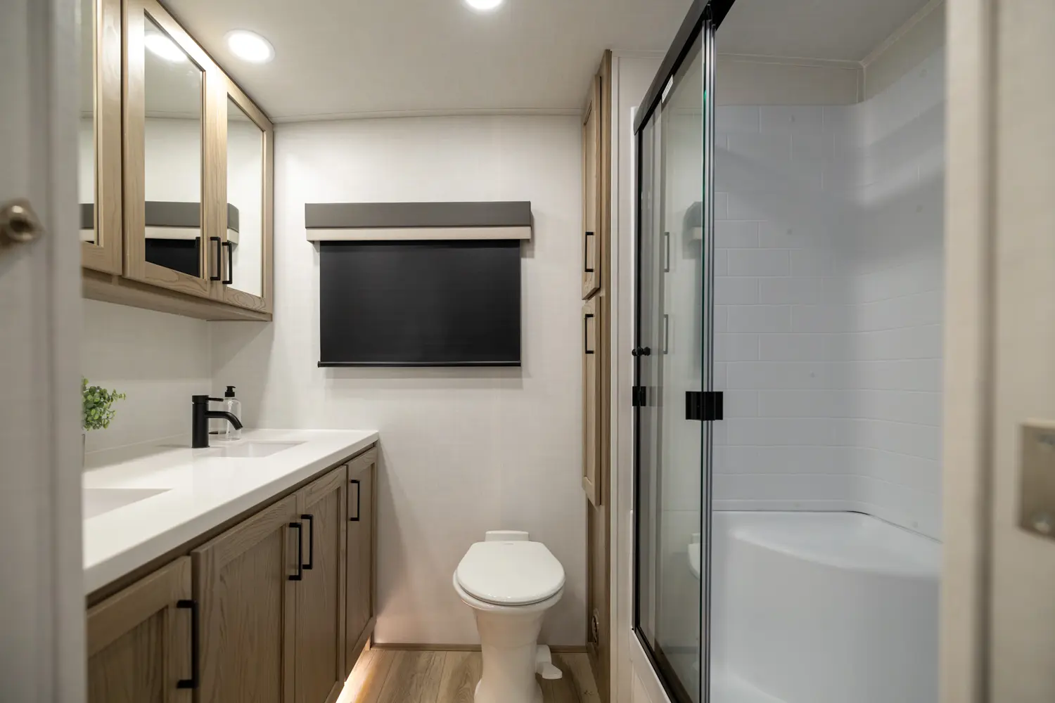 EXQUISITE, EXPANSIVE INTERIORS AS THE NORM. WELCOME TO THE CLASSIC SERIES, REDEFINING THE CAMPING EXPERIENCE THROUGH AN ARRAY OF REMARKABLE FEATURES. With its inviting open floorplans and ample storage capacity, there's room for those cherished guests or family you wish to bring along. As you nestle into the embrace of a plush king or queen sized bed, the restlessness of your adventures fade away. Through its efficient layout and panoramic windows, the classic travel trailers offer you an opportunity to luxuriate in your surroundings, all while enjoying the comfort of your serene interior.