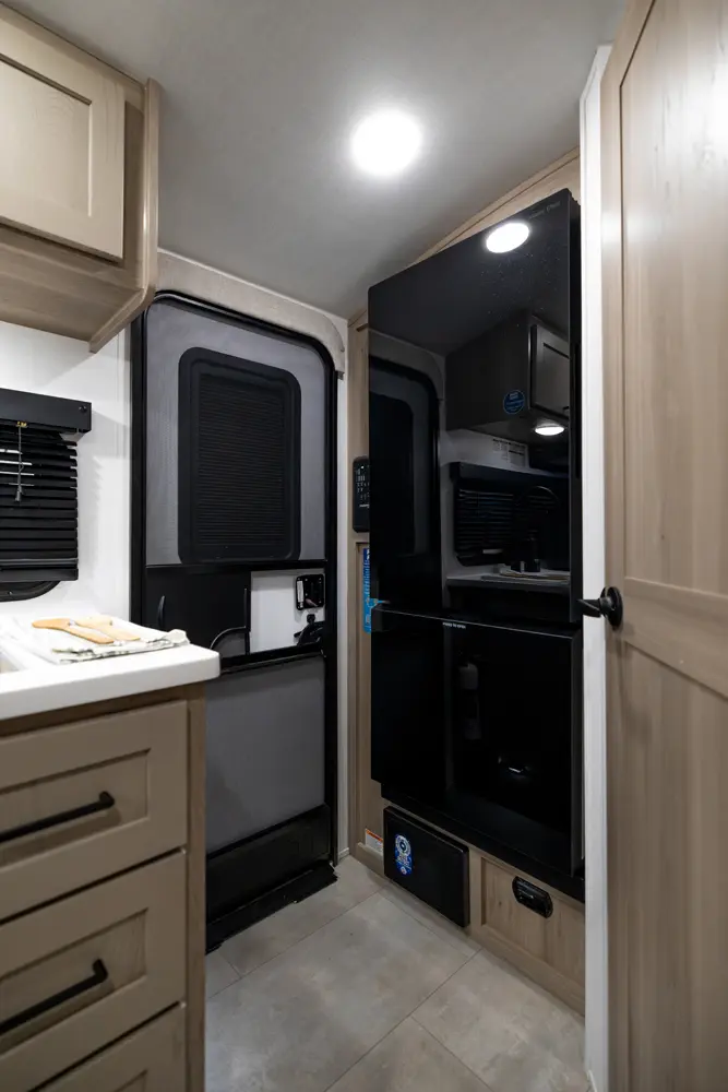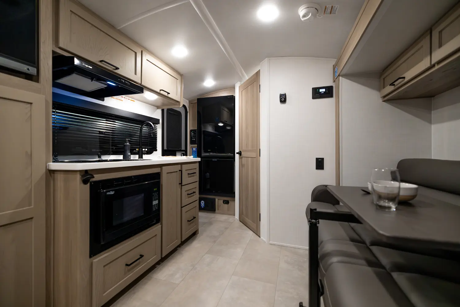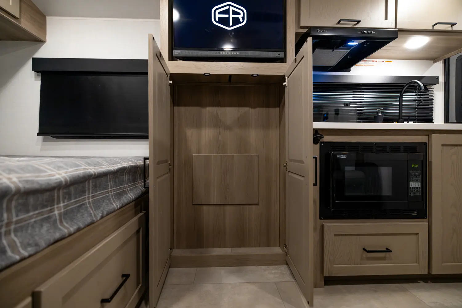The Flagstaff E-Pro E19FBS is a rear entry couples coach with a small slide that offers so much great space. The large bathroom is one of the best features of this small couples coach. The 72” sofa also makes for a great bed for guests, children or pets. At 20’ and light weight, you will not be able to get more walk around footage than this great couples coach.
