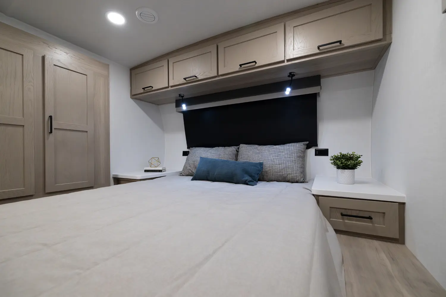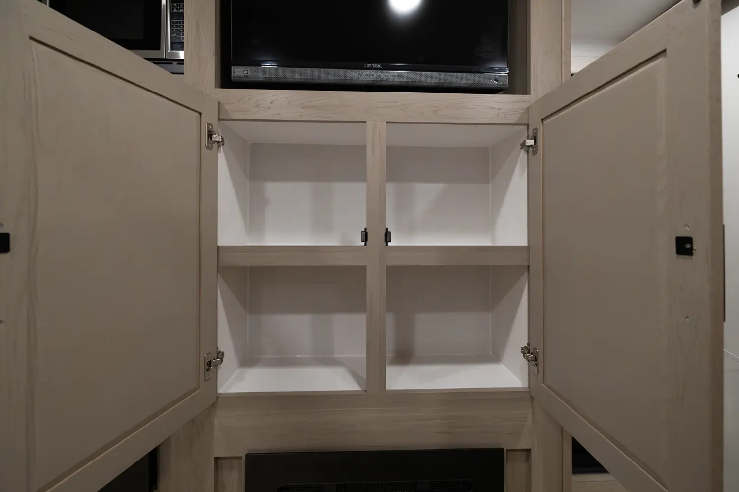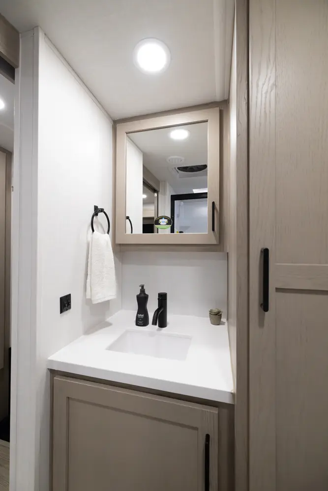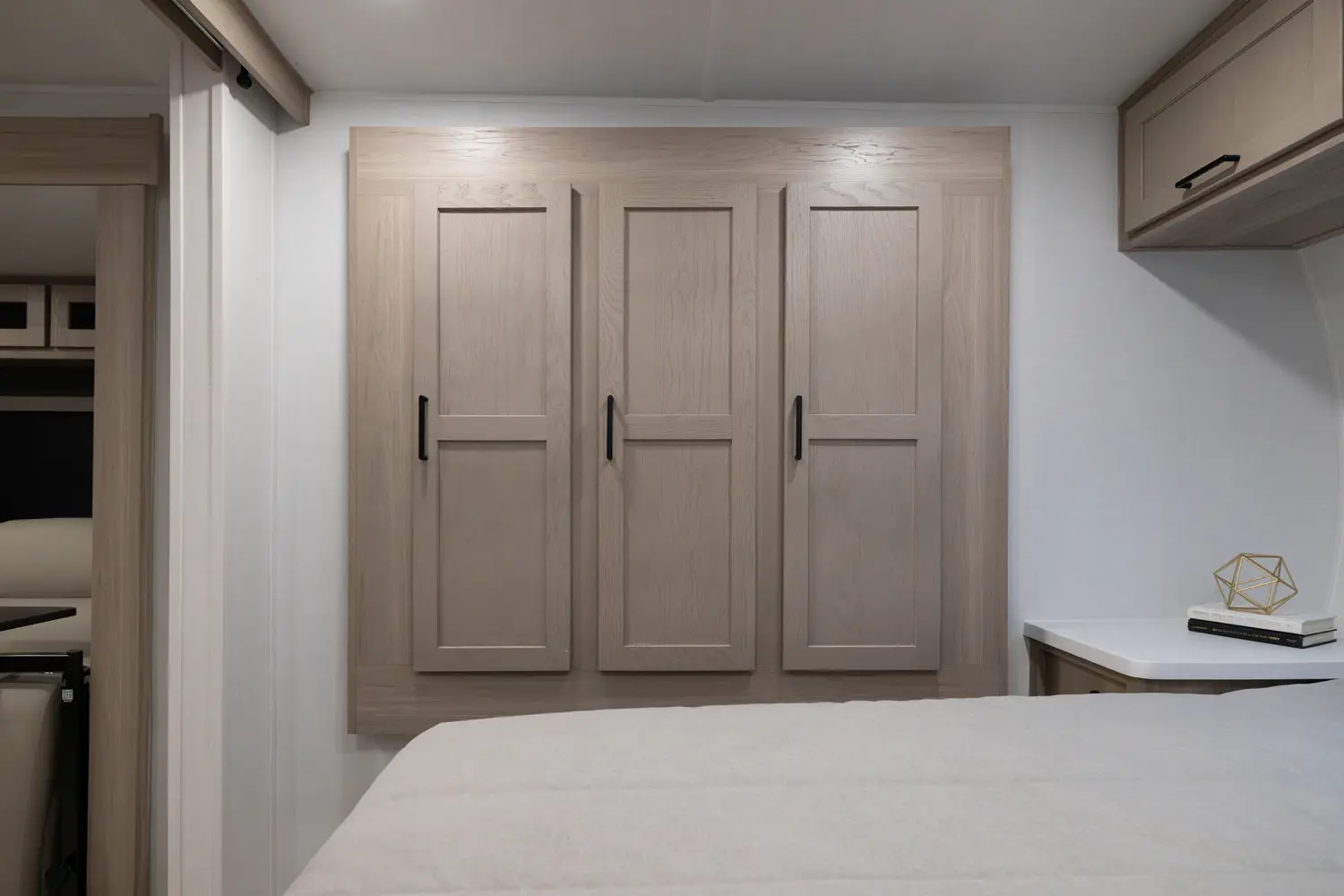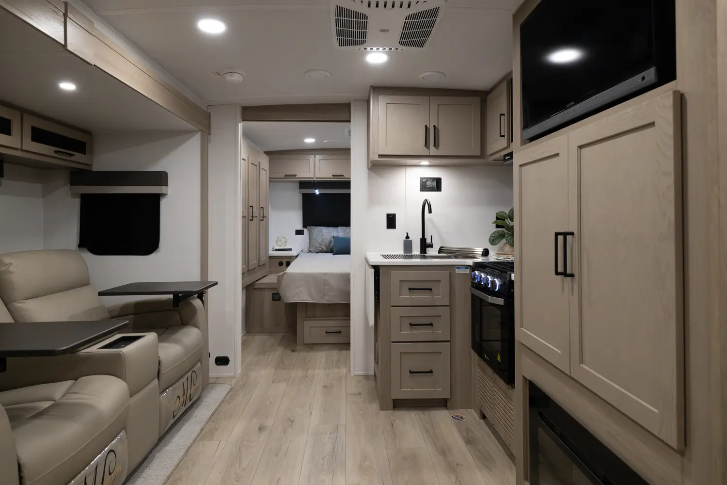 This unit is unique with its big 36" sliding doors leading to the bathroom and bedroom. These doors make moving around for a broad shouldered person easier and comfortable. The entertainement center is loaded with 32" tv, a residential soundbar and a fireplace space heater. Across from this lovely entertainment center is a 72" theatre seating which is perfect for reclining and watching a good movie.