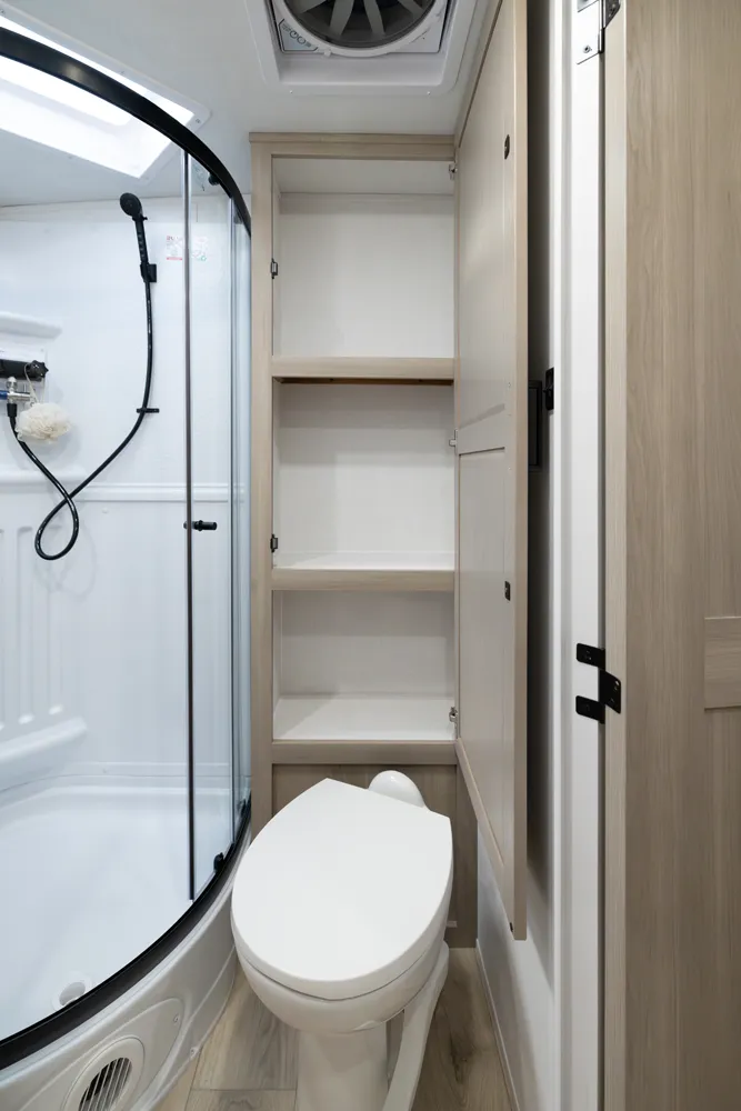 This incredibly popular floor plan has three bed expendables and one slide out featuring a large U-Shaped Dinette. All three expandable beds are residential Queen 60 x 80 beds. There is also sleeping on the 44 x 85 U-Shaped dinette and on the 67” flip out sofa. With the potential to sleep 10 people in a coach that weighs just over 5,000lb, this is a truly unique floor plan.