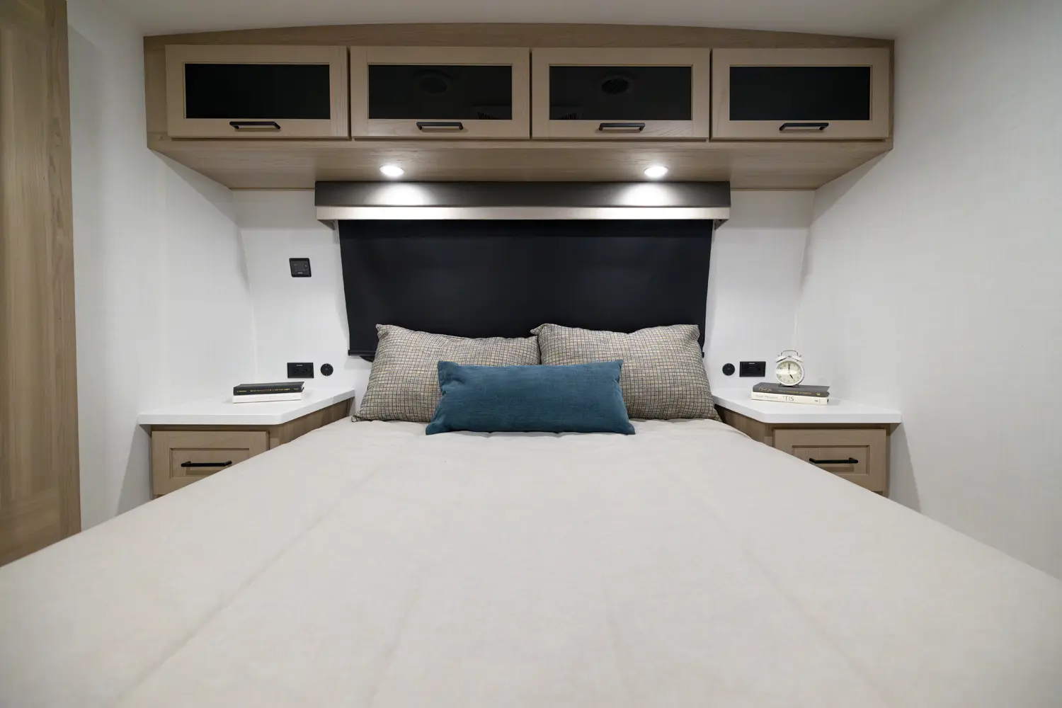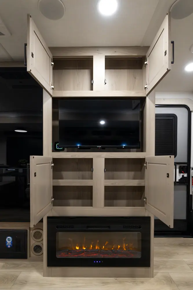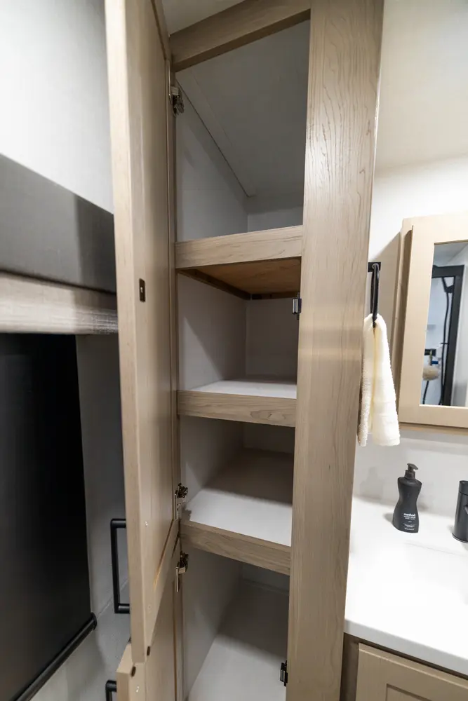 This travel trailer has everything you need and is still under 30'! This unit offers a walk around 60"x 80" queen bed, night stands on either side, and a big wardrobe slide. The 67" theater seating and the 44" dinette slide out giving the kitchen and living room area an open feeling. The rear bathroom and front bedroom are equipped with big 36" sliding doors allowing for comfortable entry and exit.