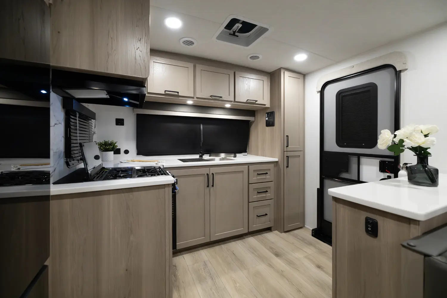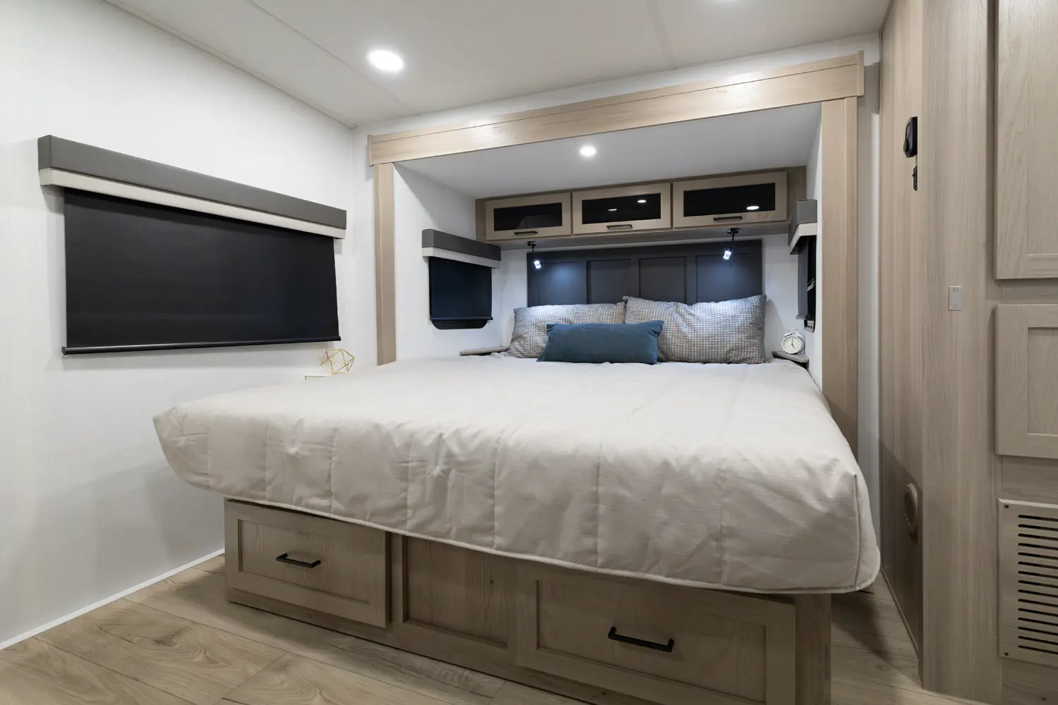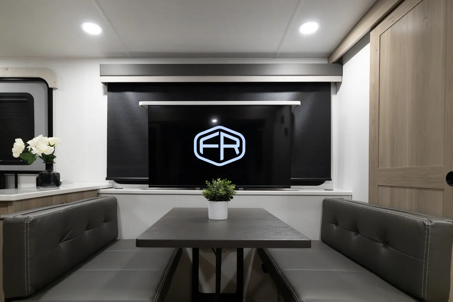 • Platinum Package: Auto Leveling, Frameless Windows, 1800W Inverter, MORryde Strut Assist Entry Step, Dual 30 LP Tanks