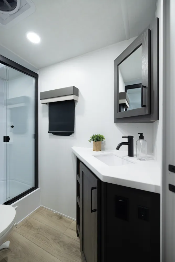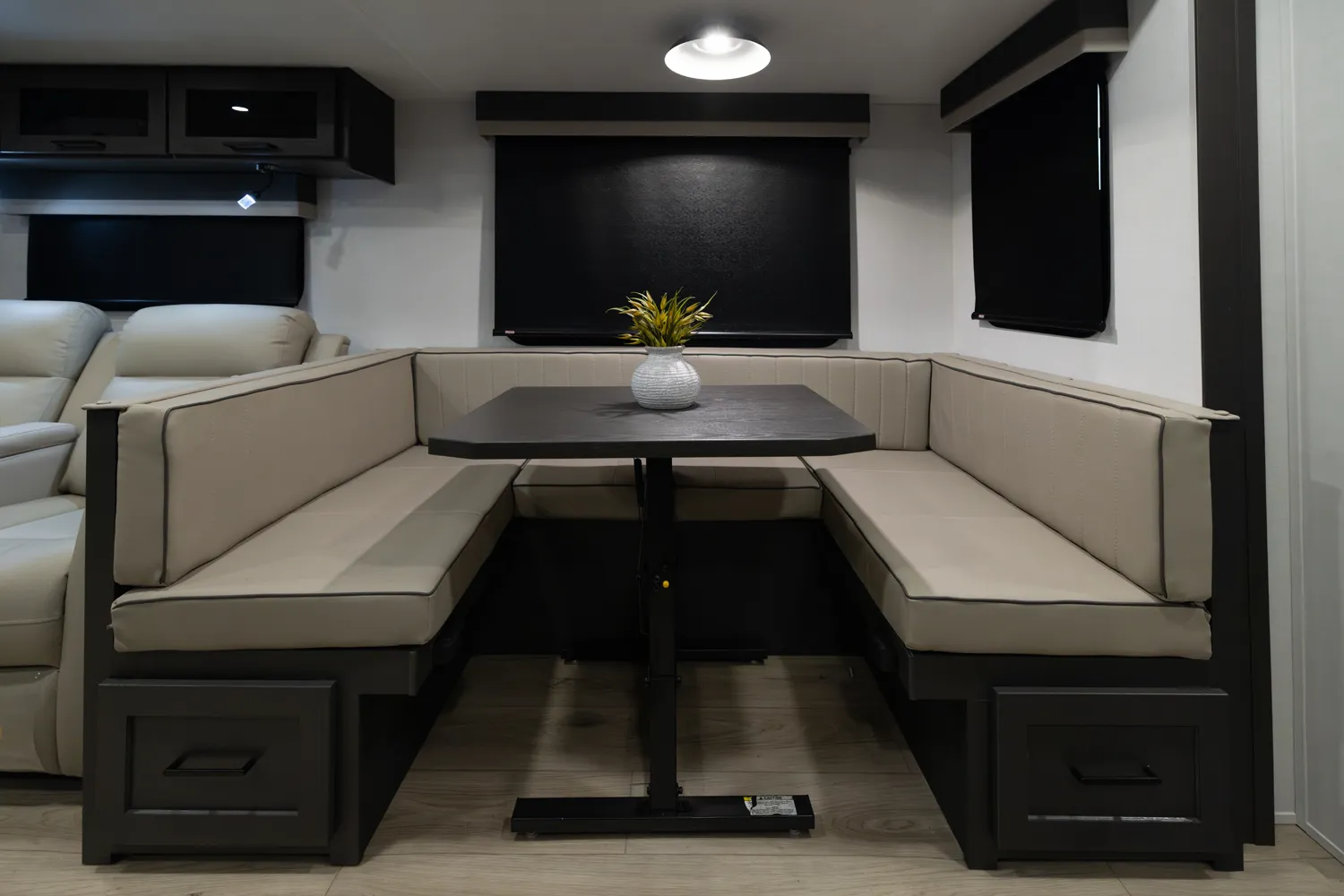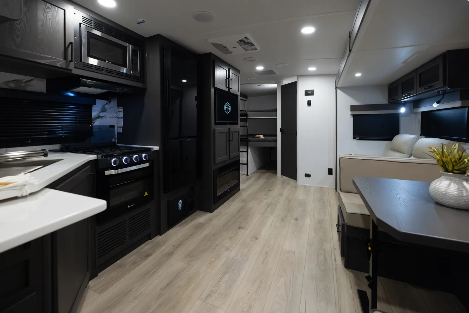 • Platinum Package: Auto Leveling, Frameless Windows, 1800W Inverter, MORryde Strut Assist Entry Step, Dual 30 LP Tanks