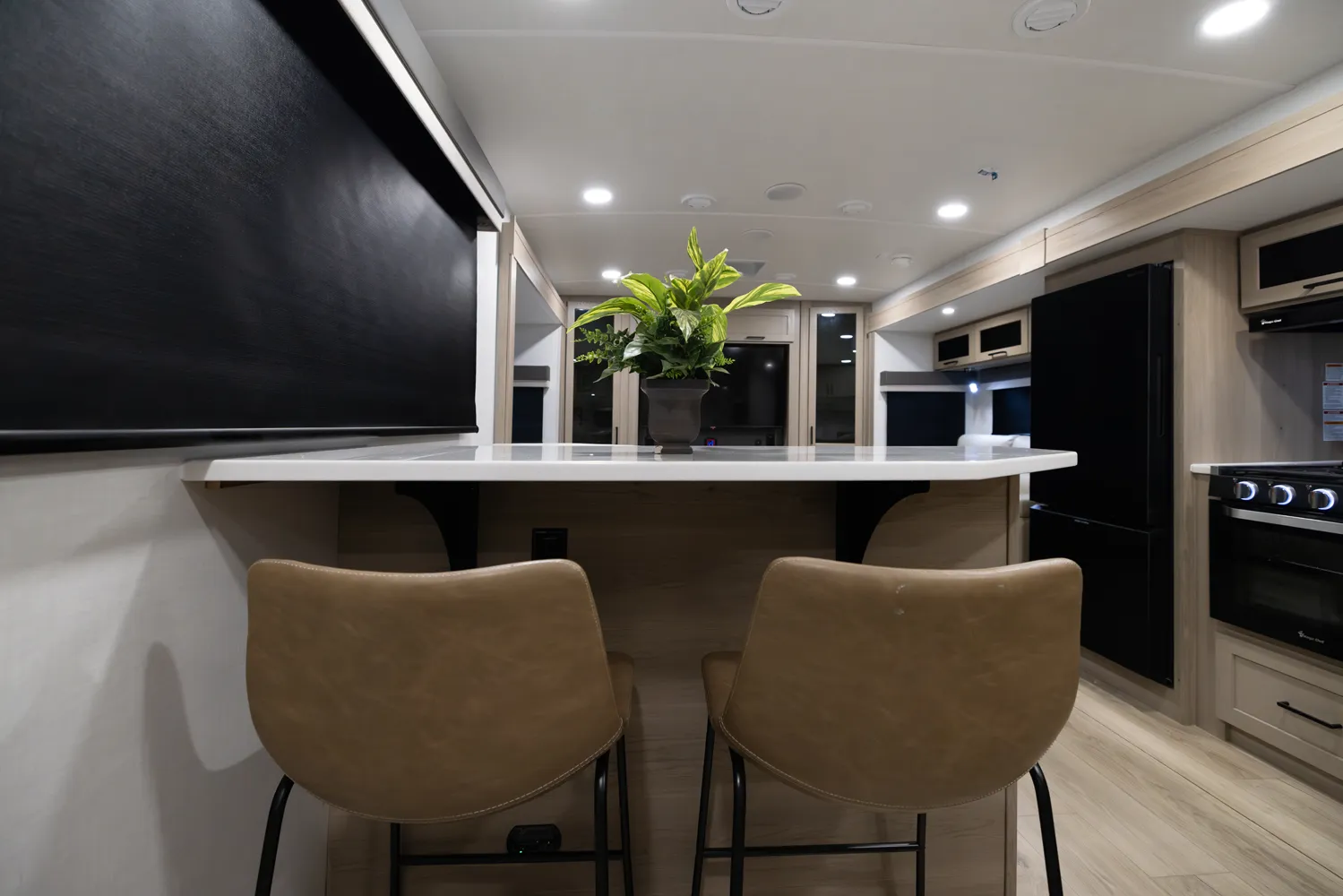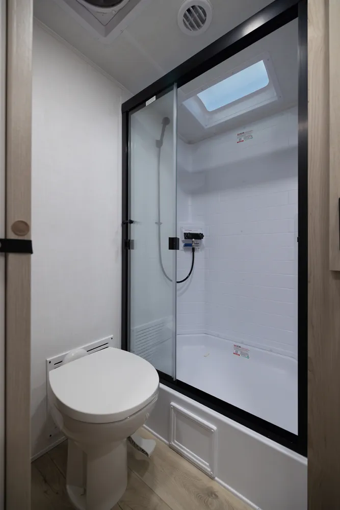 • Platinum Package: Auto Leveling, Frameless Windows, 1800W Inverter, MORryde Strut Assist Entry Step, Dual 30 LP Tanks