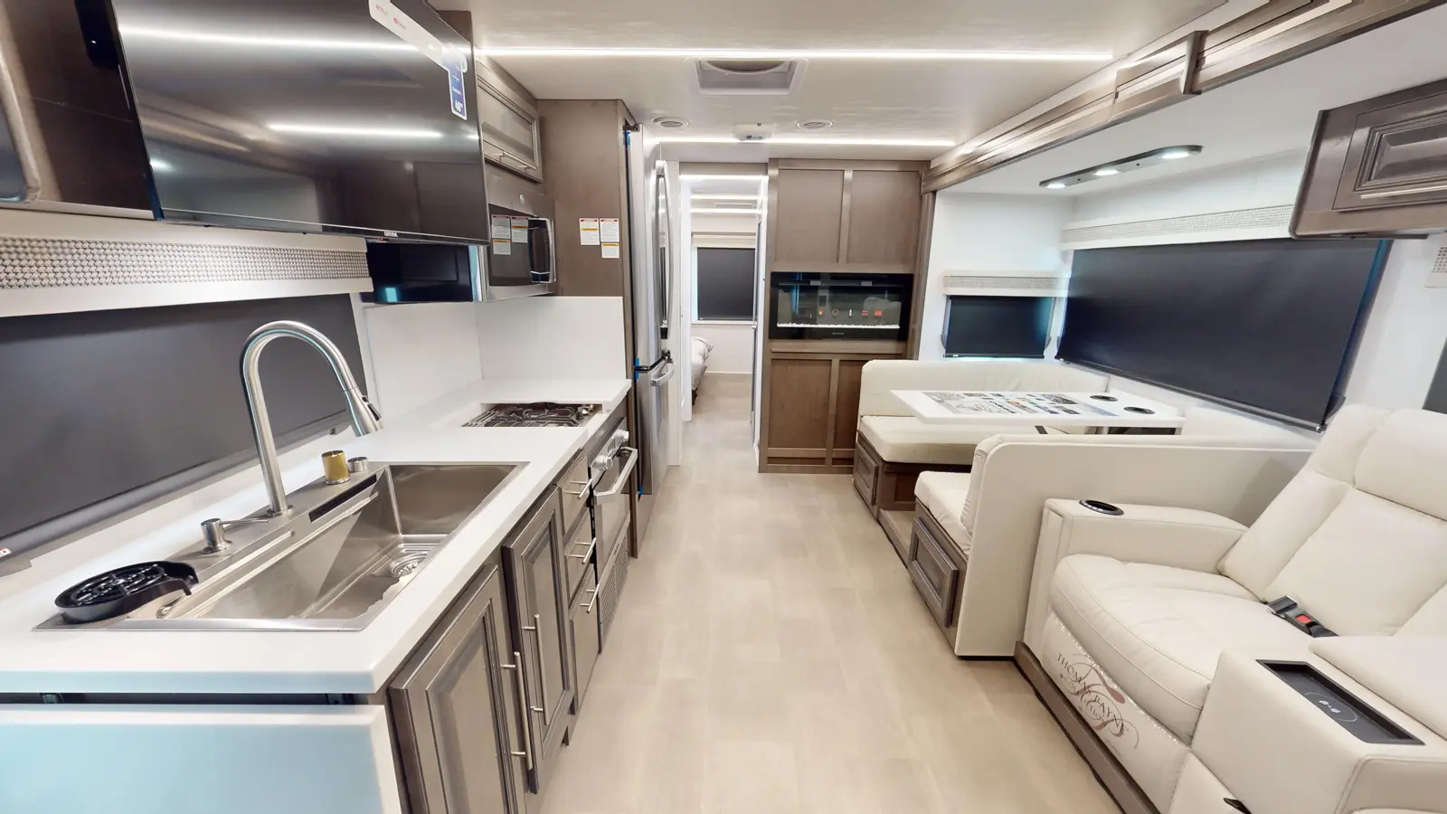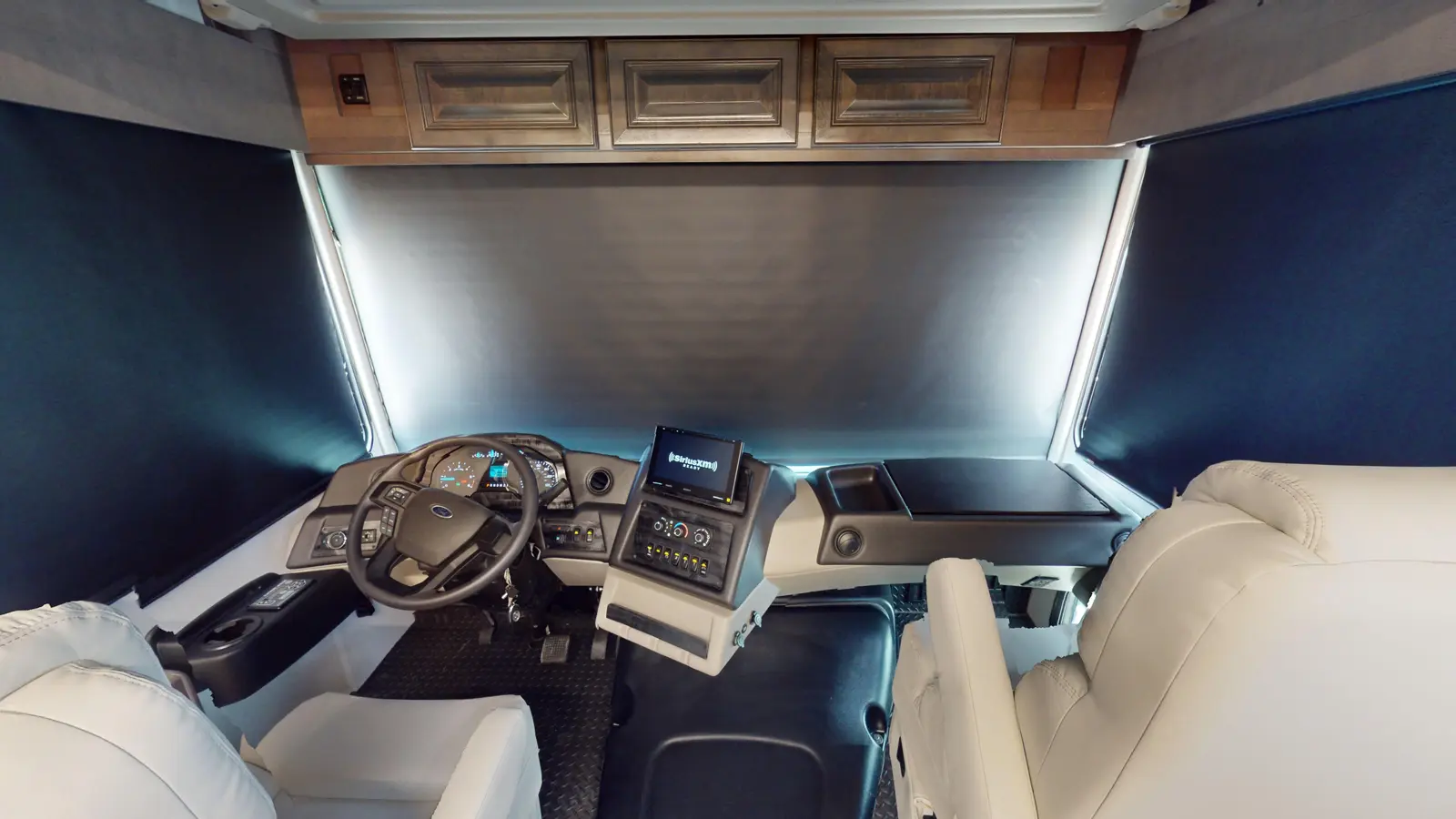 Our Georgetown 31X7 by Forest River is perfect for travelers looking for a compact and easy to drive motorhome coming in at 33ft 11in. The bedroom makes no sacrifices with a king size bed slide, washer/dryer prep and lots of wardrobe space. You also still get a full bathroom with the shower split making it convenient for your partner to shower while you get ready by the sink. There's also plenty of seating up front for guests and the dinette converts into a bed for occasional guests!