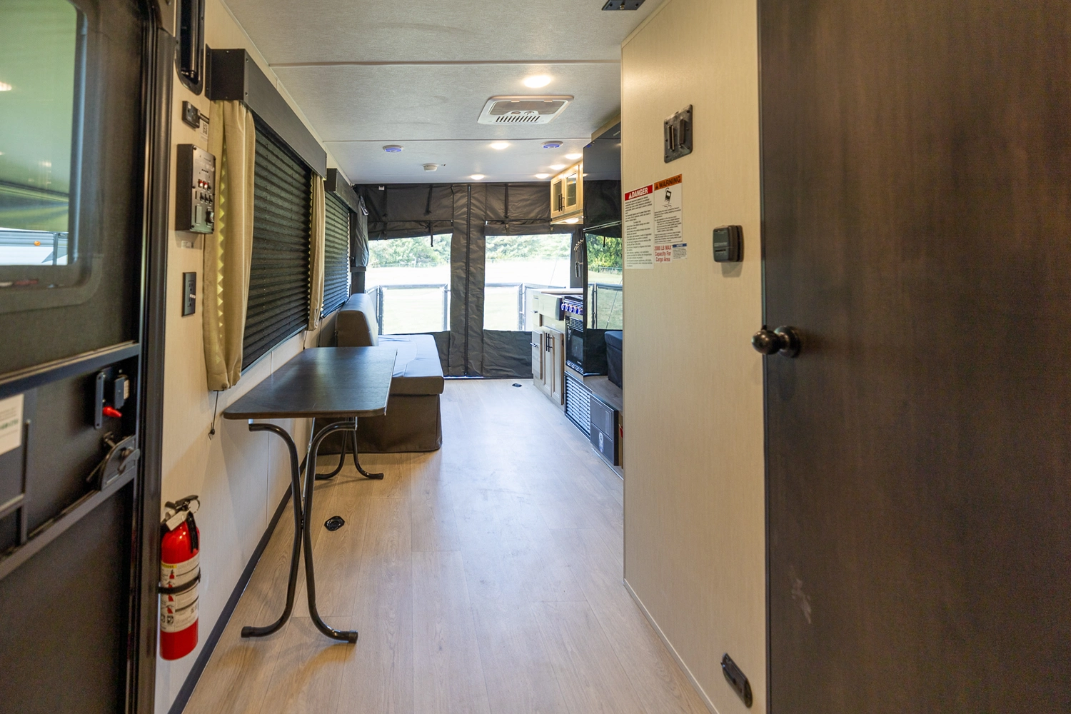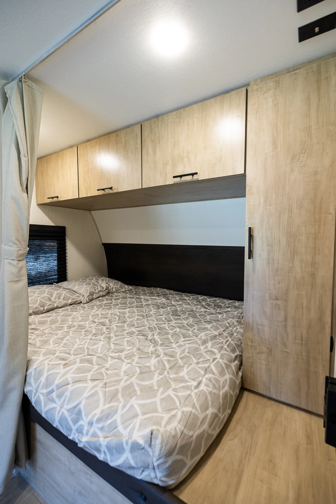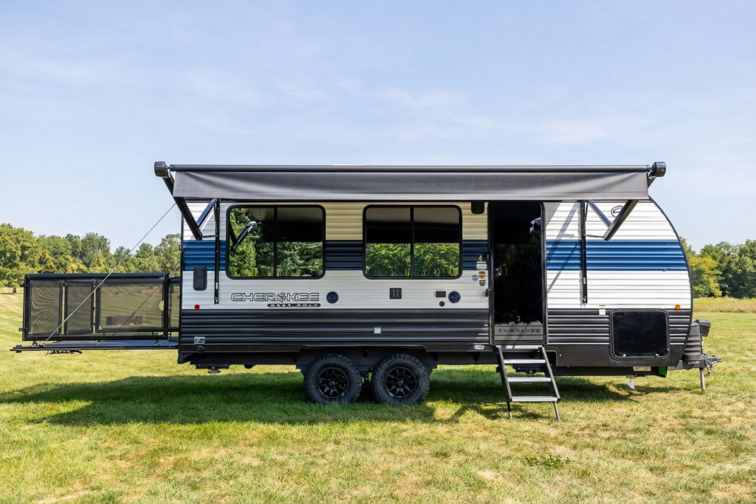 The Wolf Pup 18RJB by Forest River is a versatile travel trailer that offers a unique camping and cargo-hauling experience. The innovative ramp door can be converted into a patio, extending your living space and creating a perfect outdoor entertaining area. The flexible interior layout features a collapsable sofa and removable table, allowing you to maximize the garage space for your toys and gear. With a full-size bathroom, you can enjoy the comfort of home while on the road.