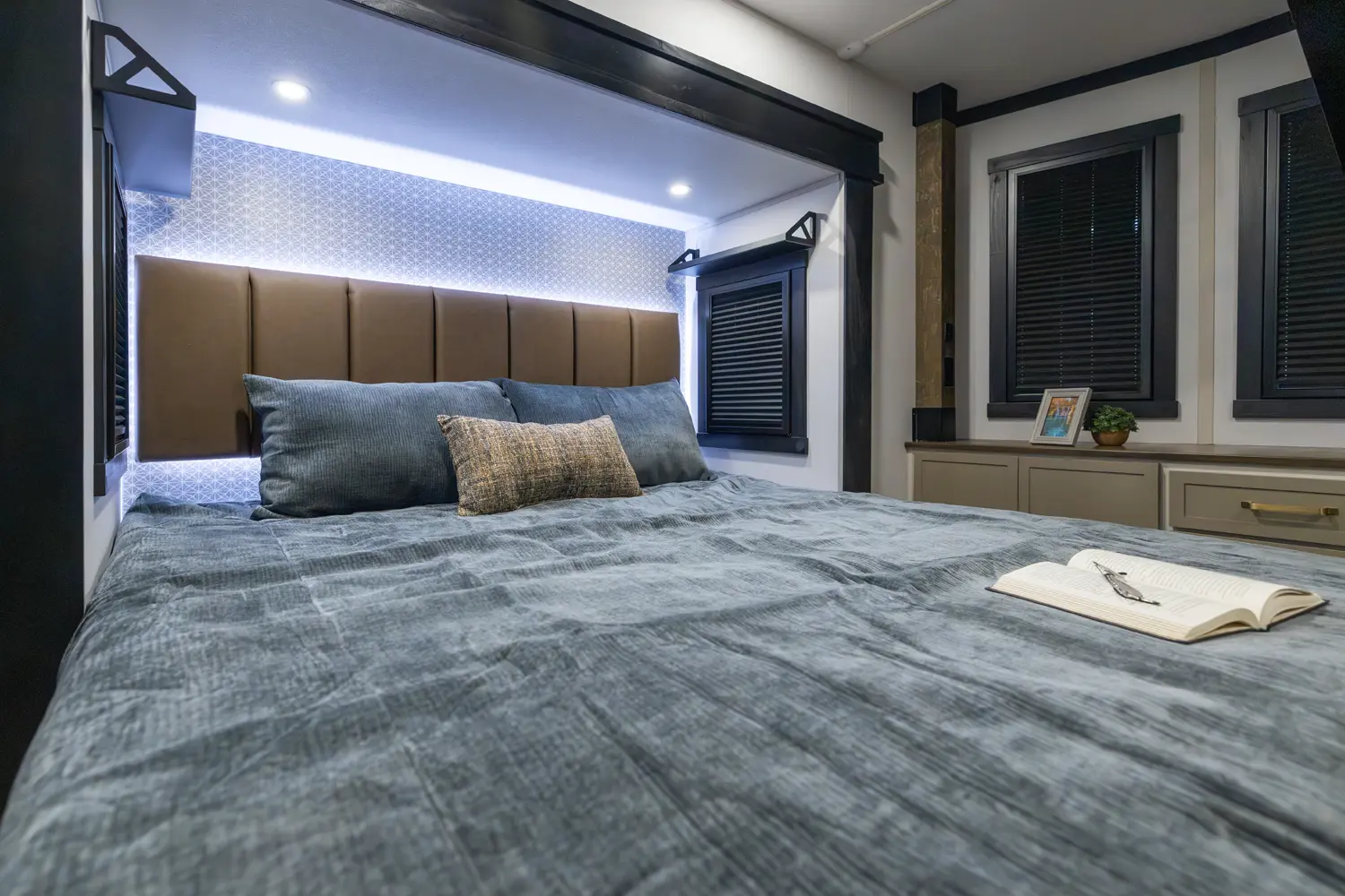 The ROOST43 provides a new segment to the RV market with a combination of a destination trailer in fifth wheel form. This creates the opportunity to move from locations easier than bumper pulling and provides the most square footage in this segment of RVs (530 Sq.Ft. compared to 399 Sq.Ft.). The ROOST43 is feature packed with residential style kitchen appliances, HUGE rear den, two lofts, bath and a half, laundry room, and an elegant interior design. The ROOST43 is will set a new era for RVing.