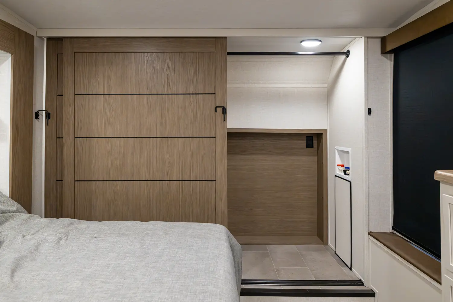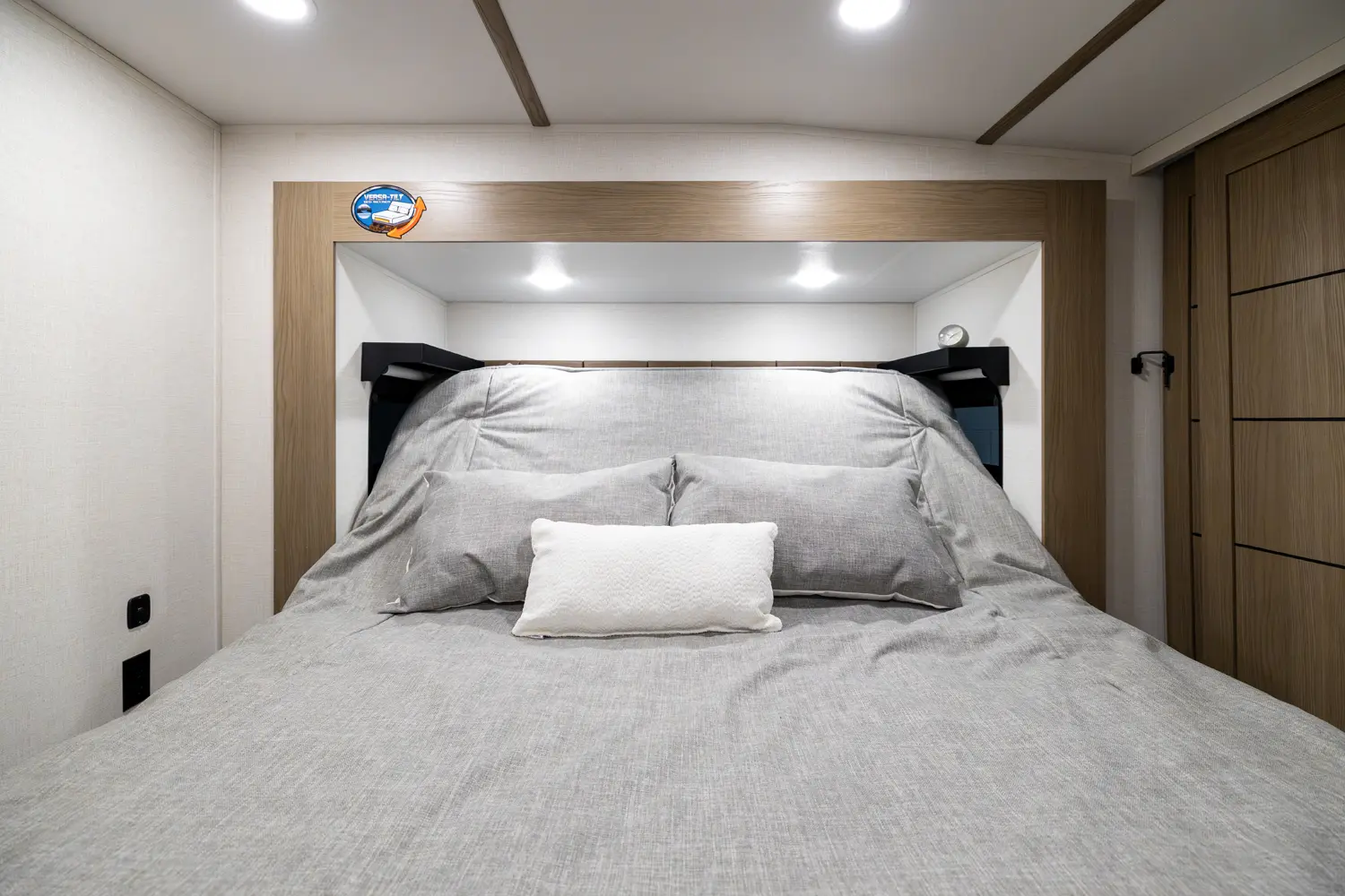• 110 Outlet & 12V Charging Ports Beside Bed
