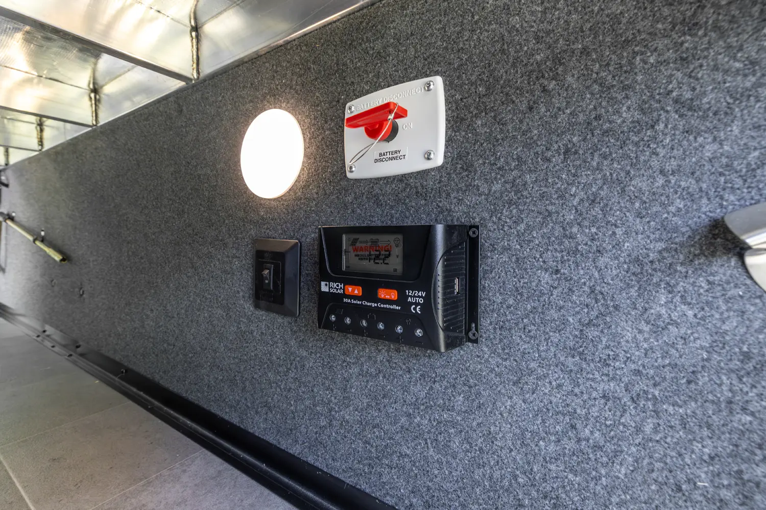 • Off Grid Package: 100W Roof Panel, 30 AMP Charge Controller, Battery