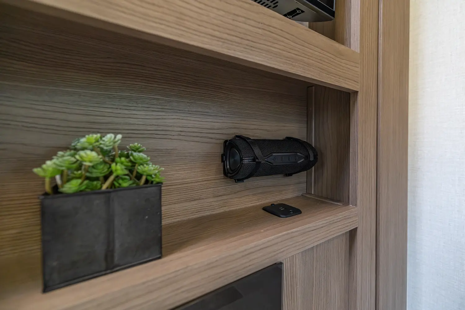• 110 Outlet & 12V Charging Ports Beside Bed