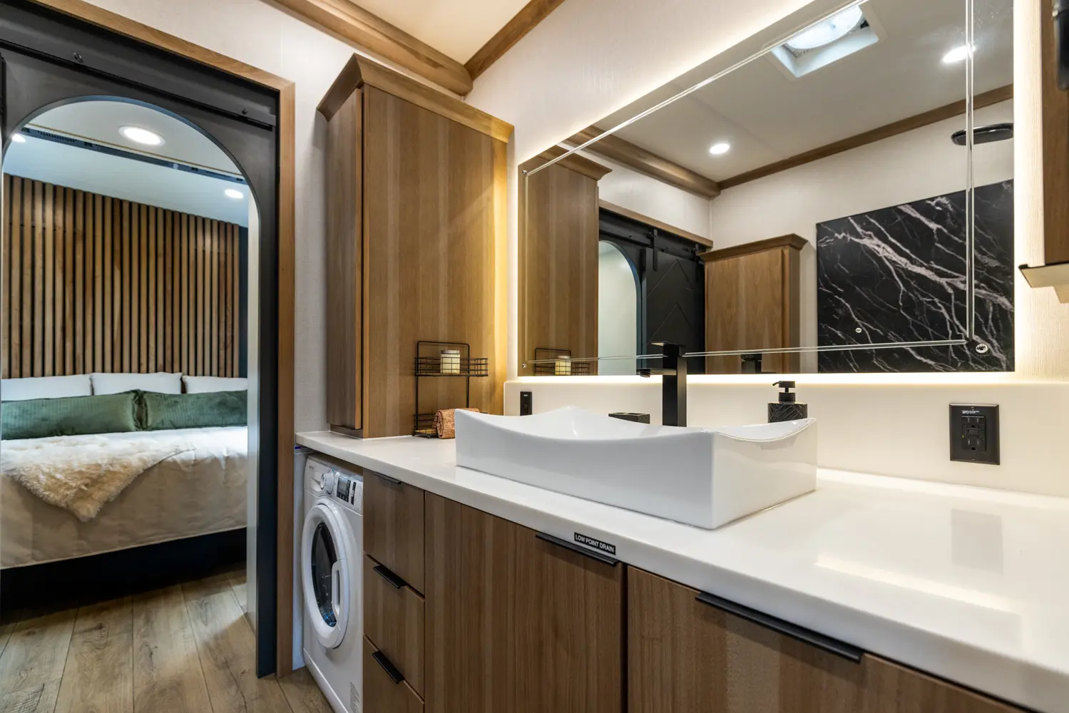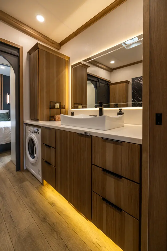 The Sequoia sets a new standard with its innovative slide-less floorplan, boosting efficiency and reducing maintenance. Inside, the galley kitchen features premium appliances, solid-surface countertops, and hardwood cabinetry. A spa-inspired bath, dual-closet bedroom, and expansive storage highlight its modern and functional design, delivering luxury and innovation in every detail.