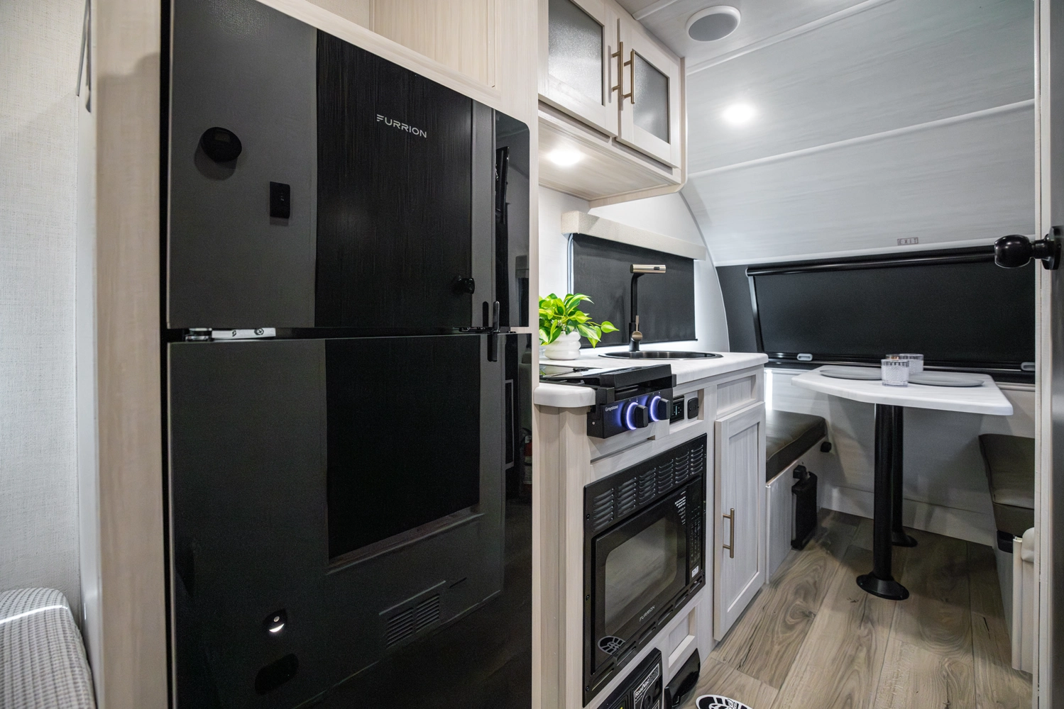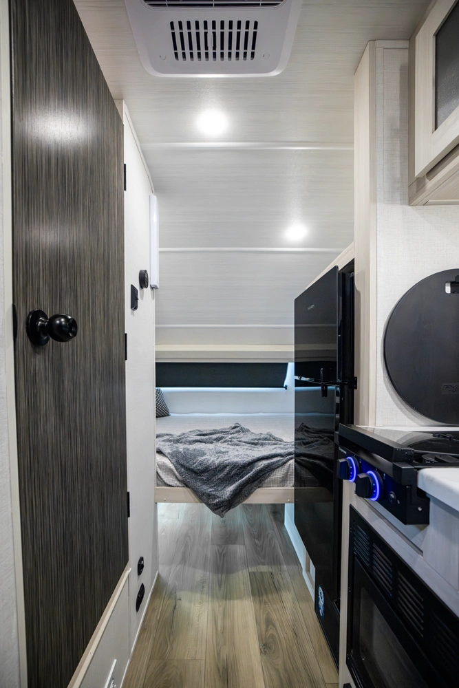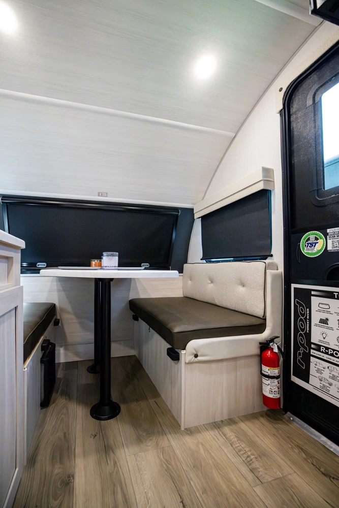 The RP-171 is an ultra-lite travel trailer offering serious features in compact form. With a well-appointed wet bath, efficient kitchen space, and a rear bedroom for restful nights, it delivers comfortable camping without excess bulk. Ample storage, modern finishes, and the thoughtful r•pod design make it ideal for couples or small families seeking lightweight, no-compromise adventures.