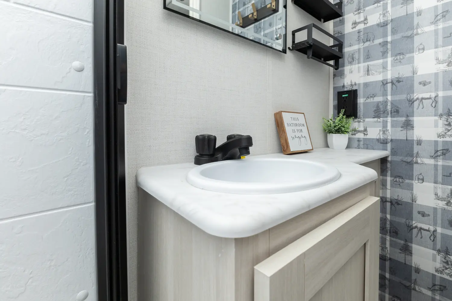 The RP-185 delivers a perfect balance of lightweight design and spacious comfort. Inside, you’ll find a roomy rear bath, well-equipped kitchen, and inviting dinette that converts for sleeping space. A unique bar top with a flip-up window creates an open-air feel, perfect for serving or relaxing outside. Modern finishes and clever storage complete this travel-ready design.