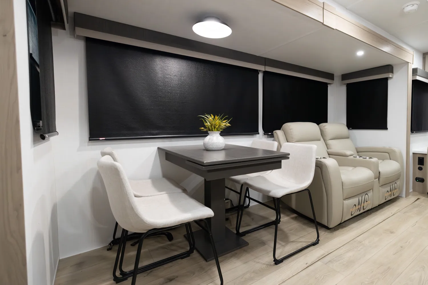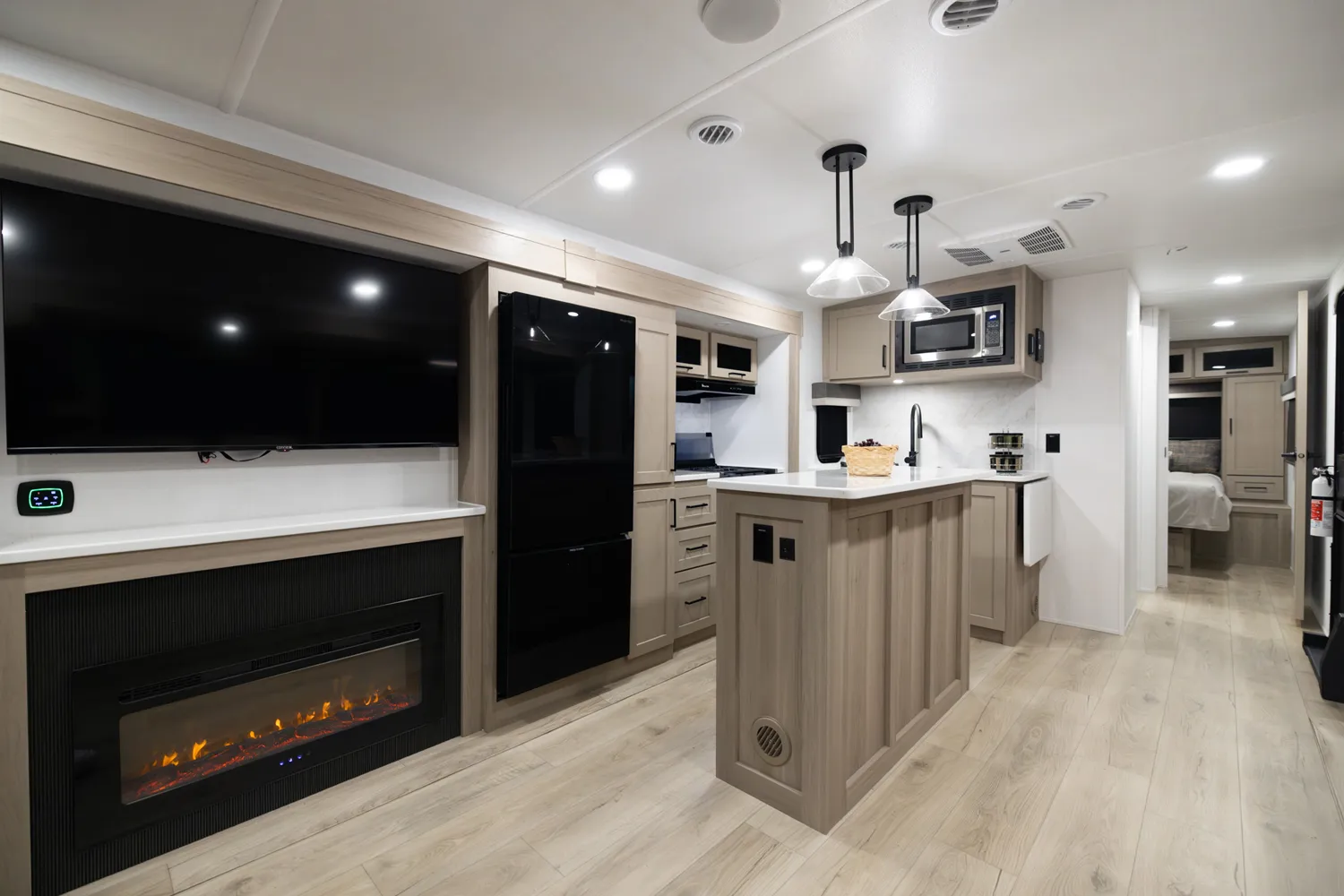 • Platinum Package: Auto Leveling, Frameless Windows, 1800W Inverter, MORryde Strut Assist Entry Step, Dual 30 LP Tanks