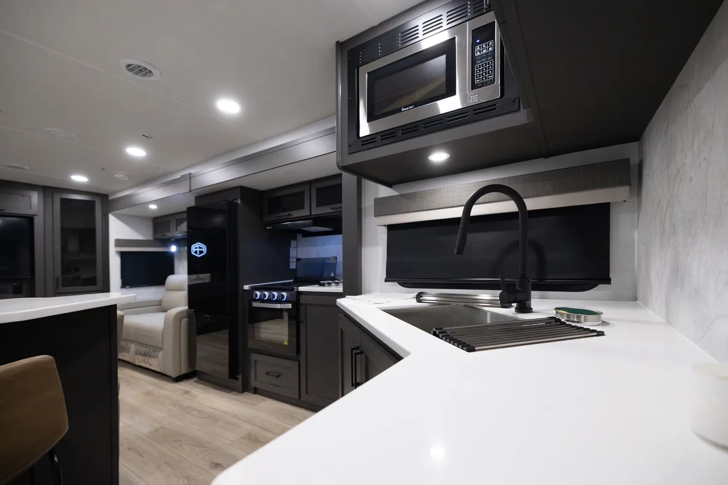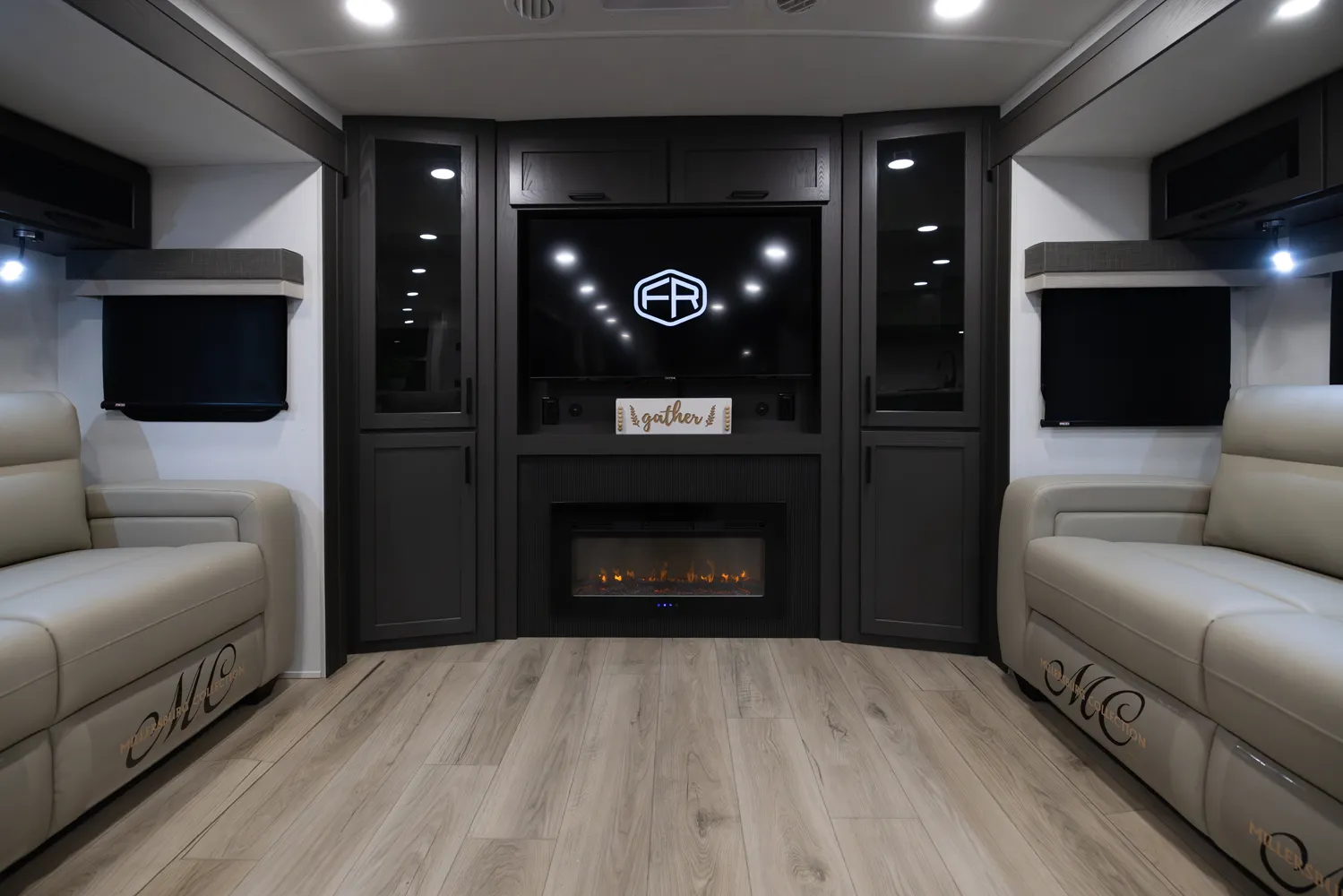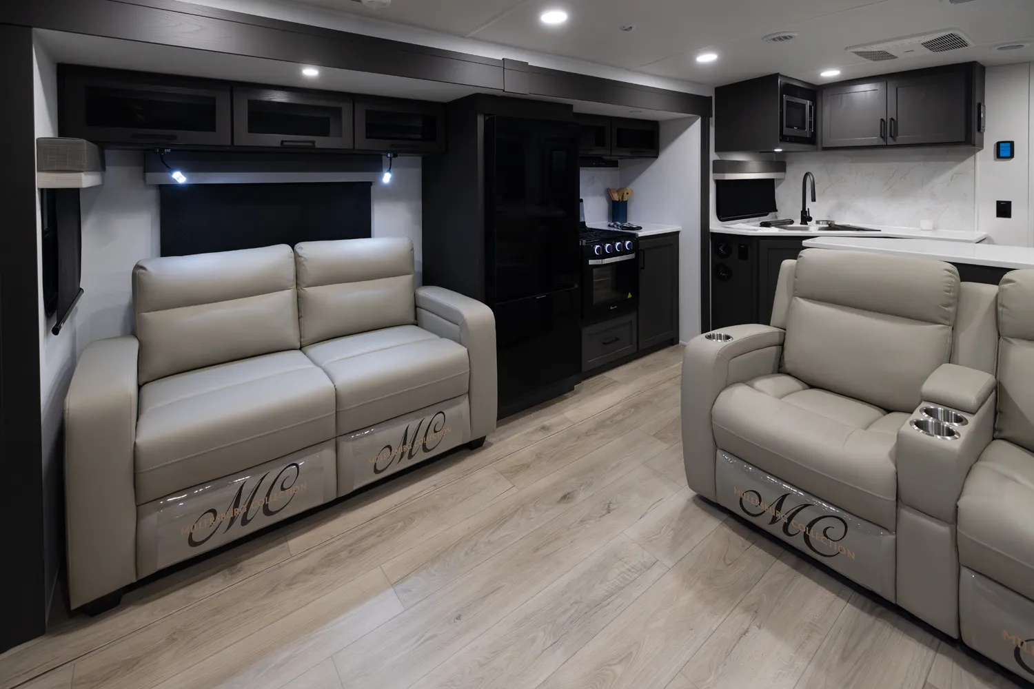 • Platinum Package: Auto Leveling, Frameless Windows, 1800W Inverter, MORryde Strut Assist Entry Step, Dual 30 LP Tanks