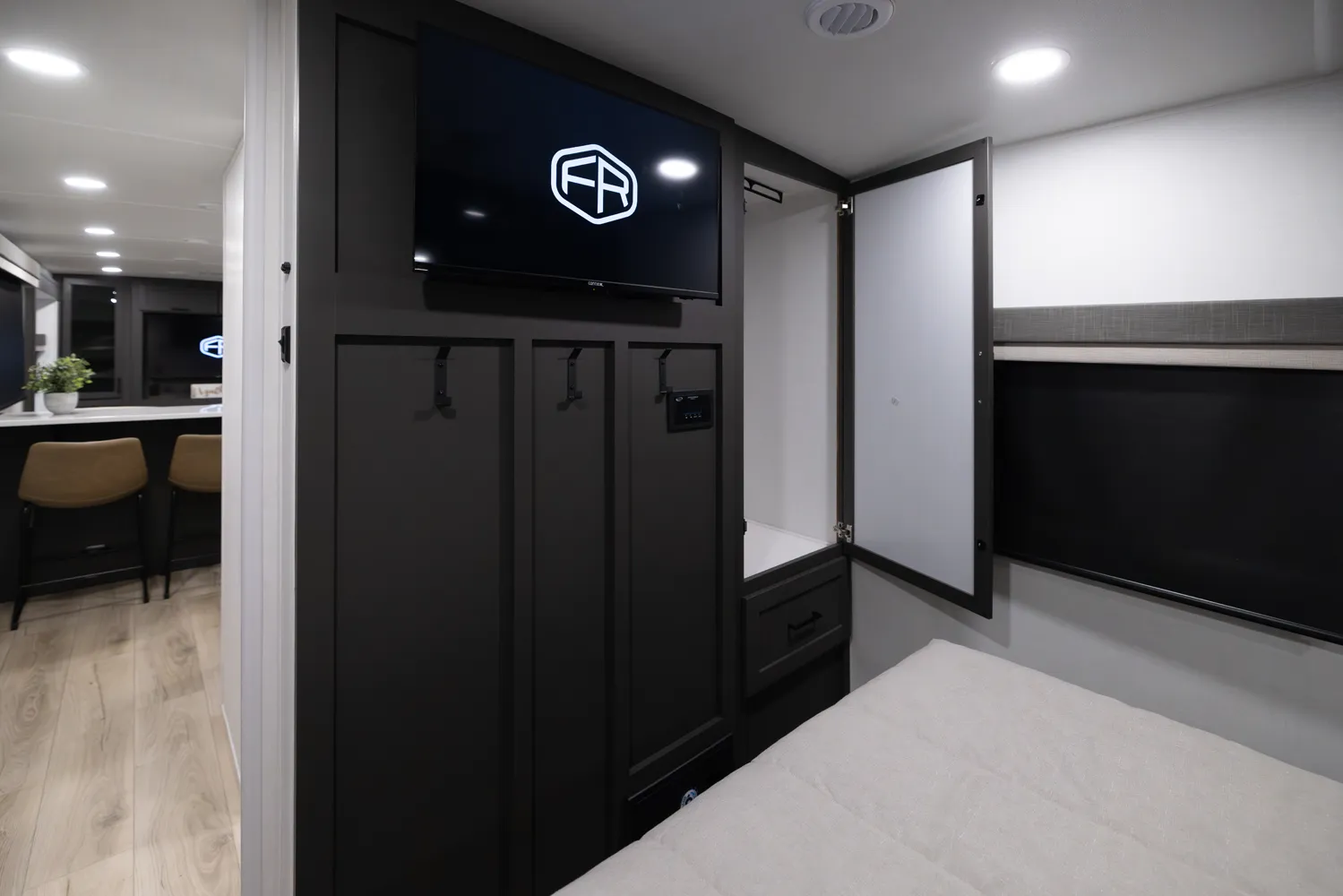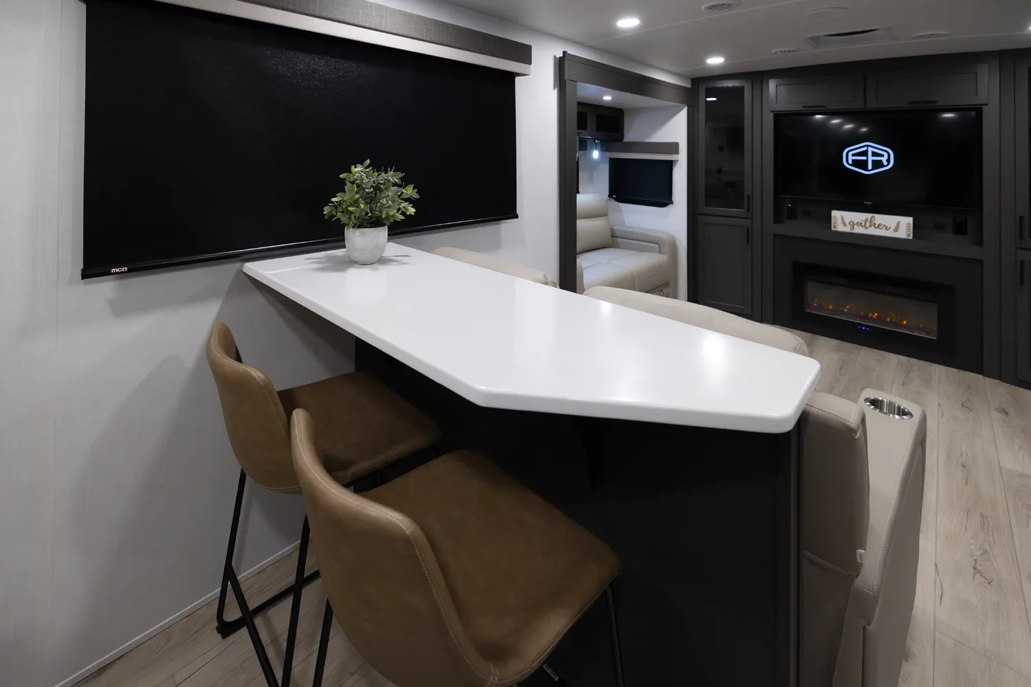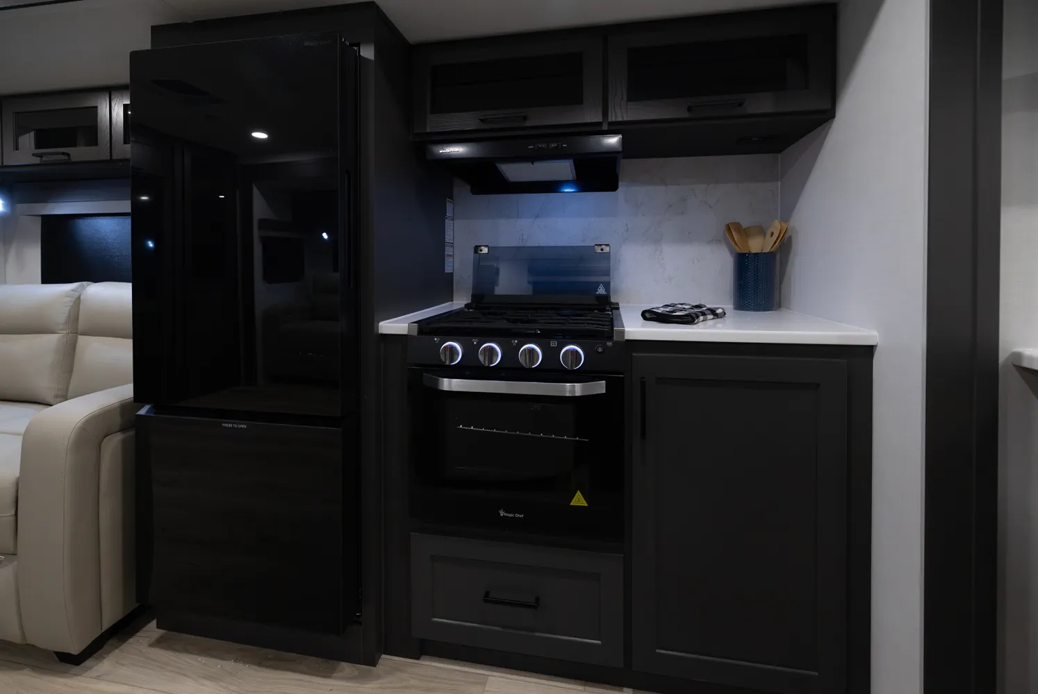 • Platinum Package: Auto Leveling, Frameless Windows, 1800W Inverter, MORryde Strut Assist Entry Step, Dual 30 LP Tanks