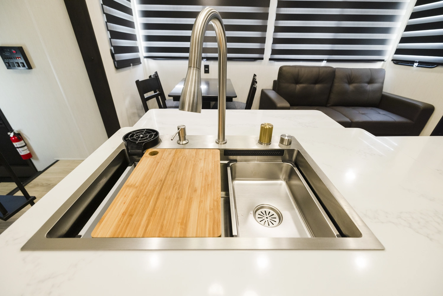 The Rogue Store defies traditional categorization, blending the best elements of travel trailers, fifth wheels, toy haulers, and destination trailers to create a truly unique RV profile. At its core lies our fully insulated hinged rear wall. This innovation transforms the rear garage into a genuinely multifunctional zone—shifting seamlessly from a cargo bay for your toys to a comfortable second bedroom, a spacious living area, or secure storage while you are away.