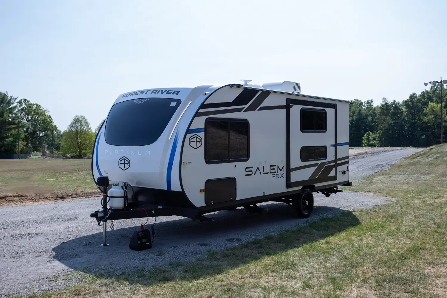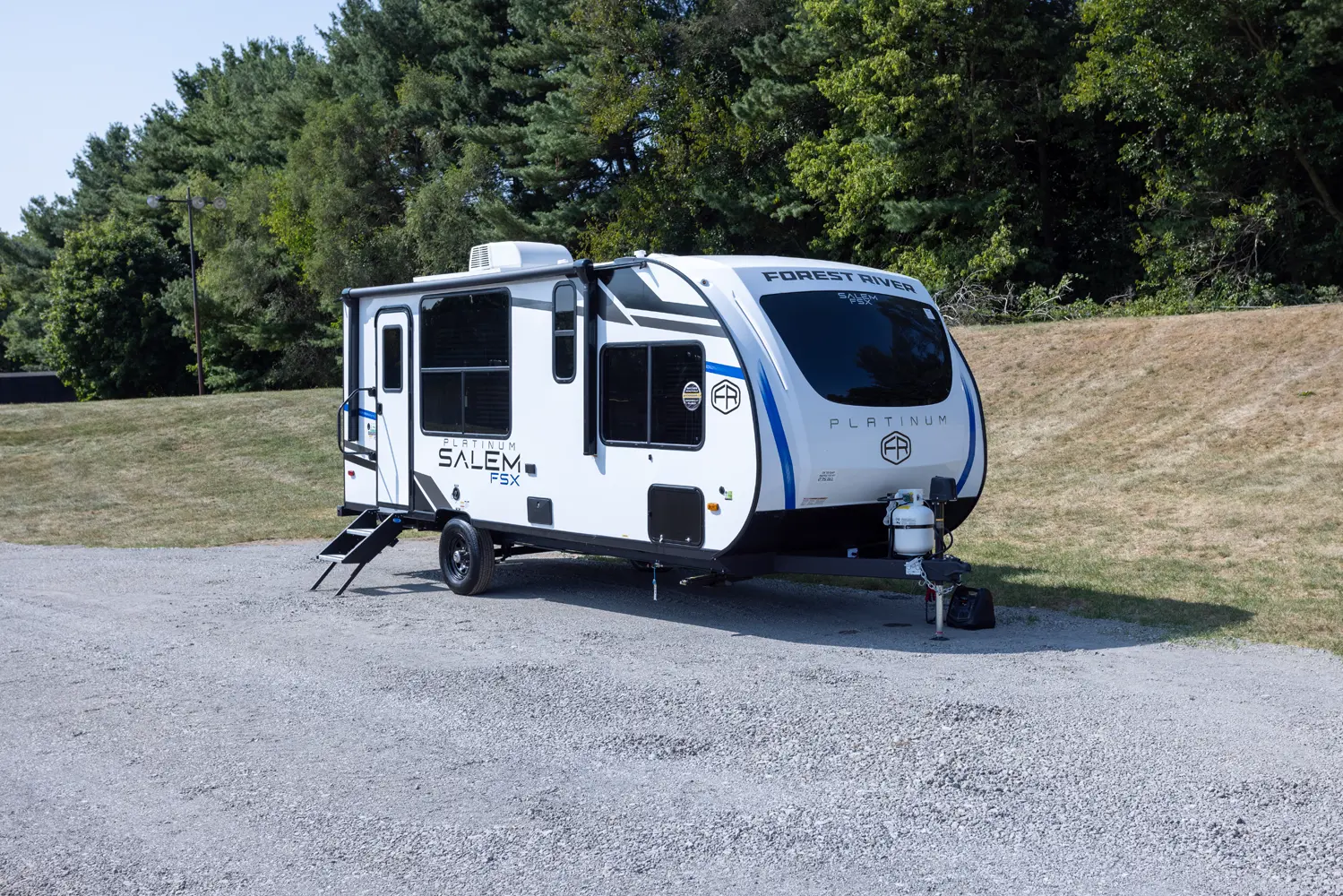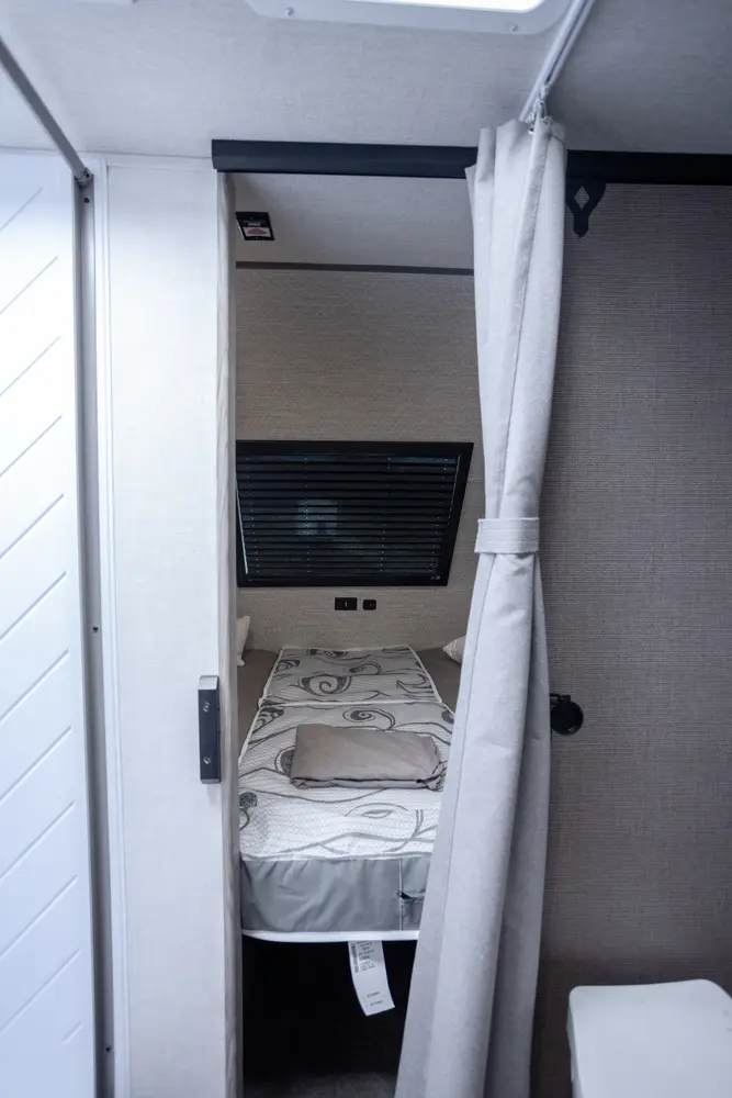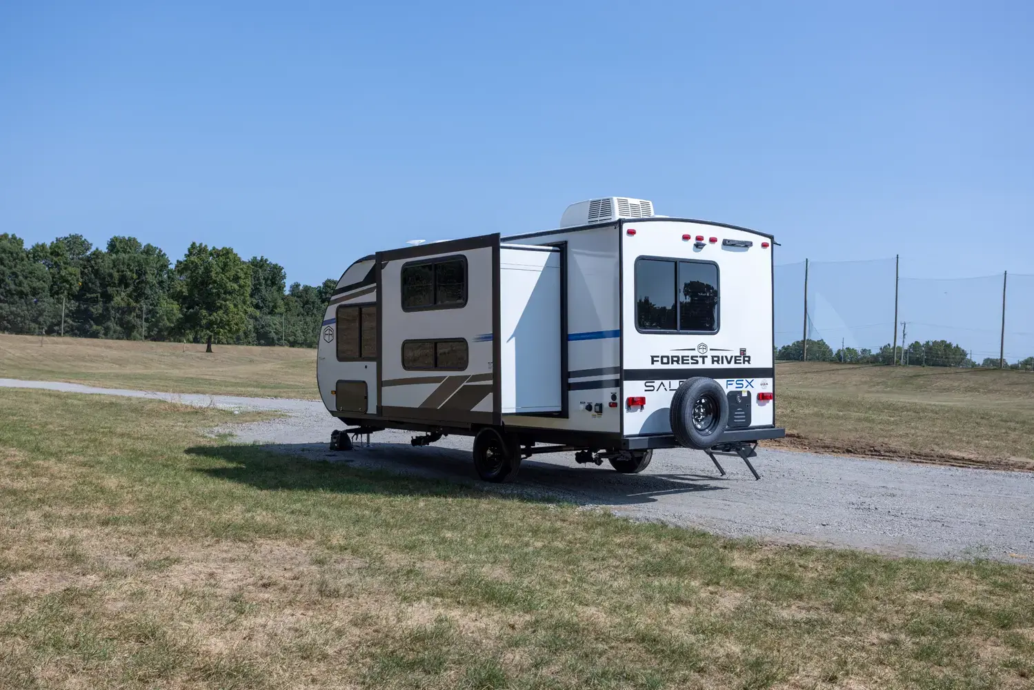 The Salem FSX 165RKS floorplan has one entry and one slide out. Exterior features include: fiberglass exterior and 15' awning. Interiors features include: bunk beds, rear kitchen, front bedroom and pass through bathroom.