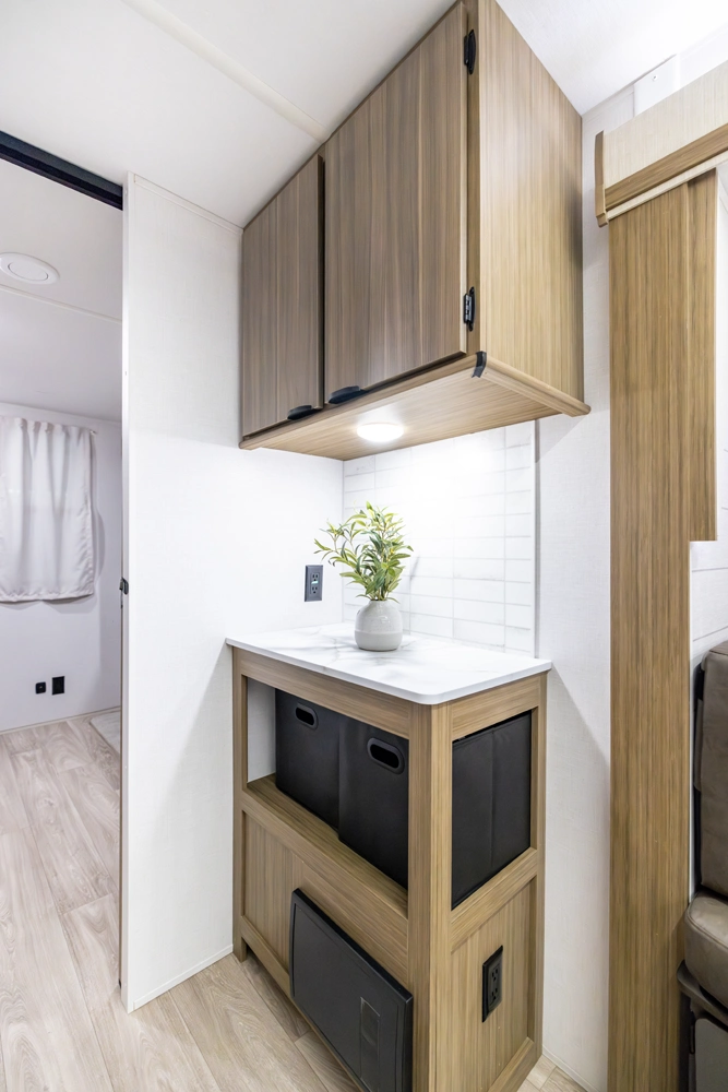 The 32BHDS is the ultimate bunkhouse, with two total slide outs and an outside kitchen. This well-equipped travel trailer features oversized panoramic windows, the ever-popular U-dinette, which you can customize with the adjacent Versa-Lounge. The kitchen includes a 11 CU. FT. refrigerator and stovetop with oven and LED accents, plus cabinets for all your cooking essentials!