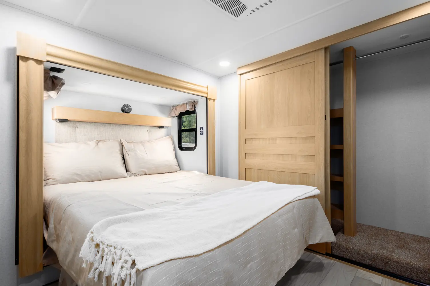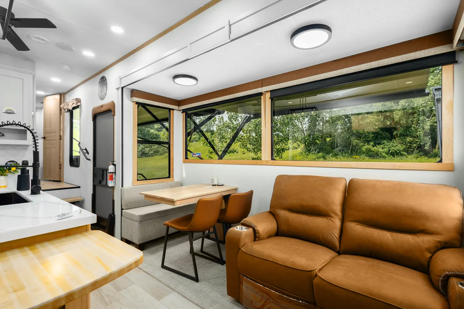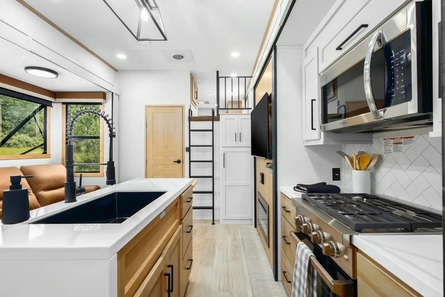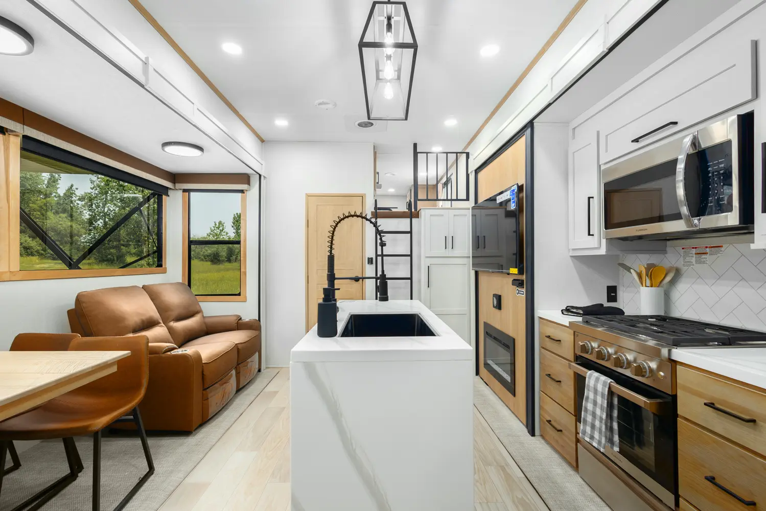 The 4002FB is a double queen bed and loft coach. With 4 slideouts and a double bunk loft, this floorplan has enough sleeping space for whoever wants to tag along. Rear entry into the 2nd full bath will offer full amenities without cluttering or using the master bath. The island kitchen and theater seating provide a great space to entertain and unwind. The 4002FB is extremely versatile, utilizing the extra bedroom or loft for storage when the sleeping space isn't needed.