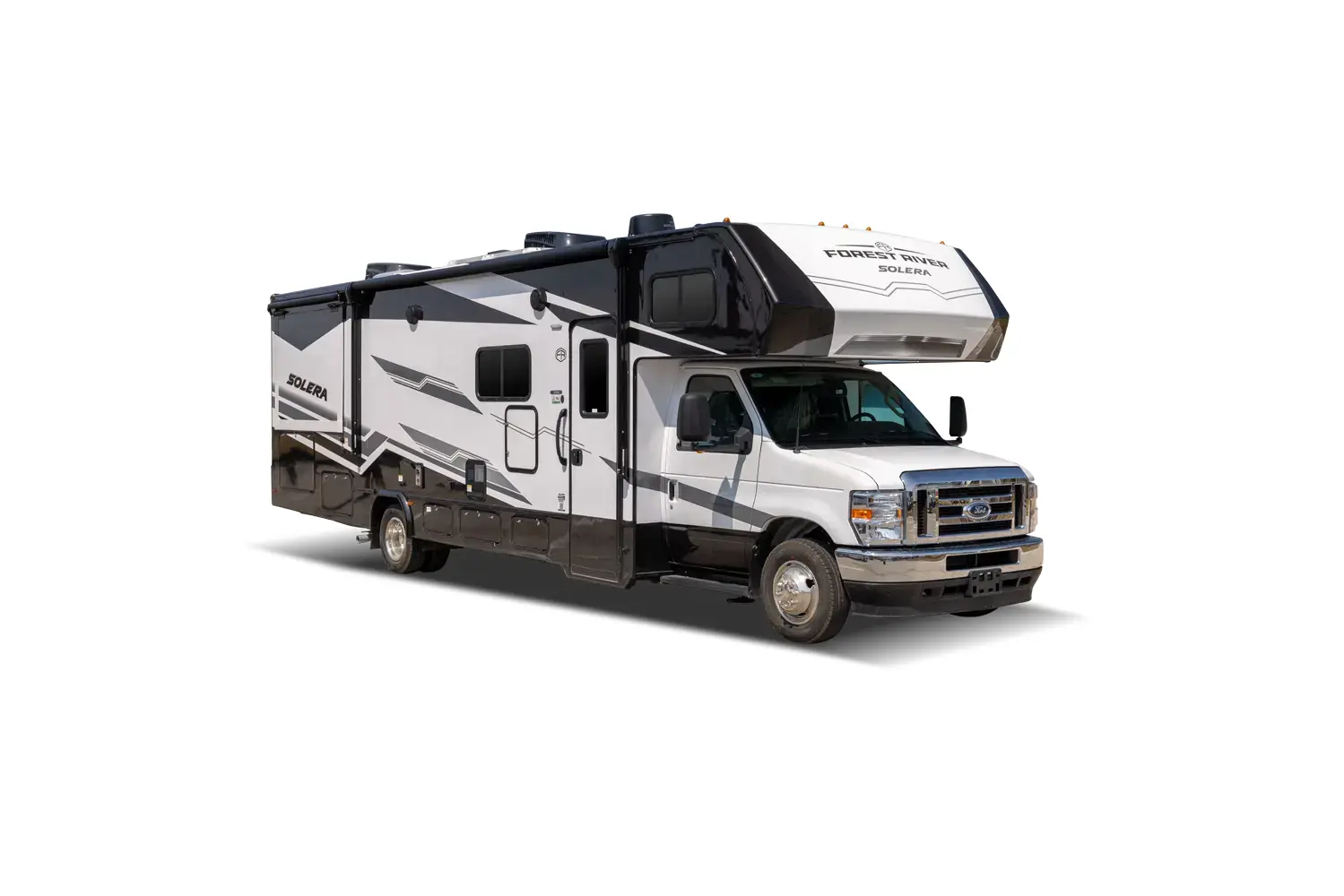 Solera’s contemporary style and residential luxury is offered in a value package designed to get you into the Class C RV lifestyle. Popular standard amenities include an 8" Sony CarPlay/Android radio, 12V LED TV, 10.7 cu. ft. 12V Refrigerator, convection microwave, back-up and side view cameras, a 12V Solar charging system and Bilstein shocks with a lifetime warranty.