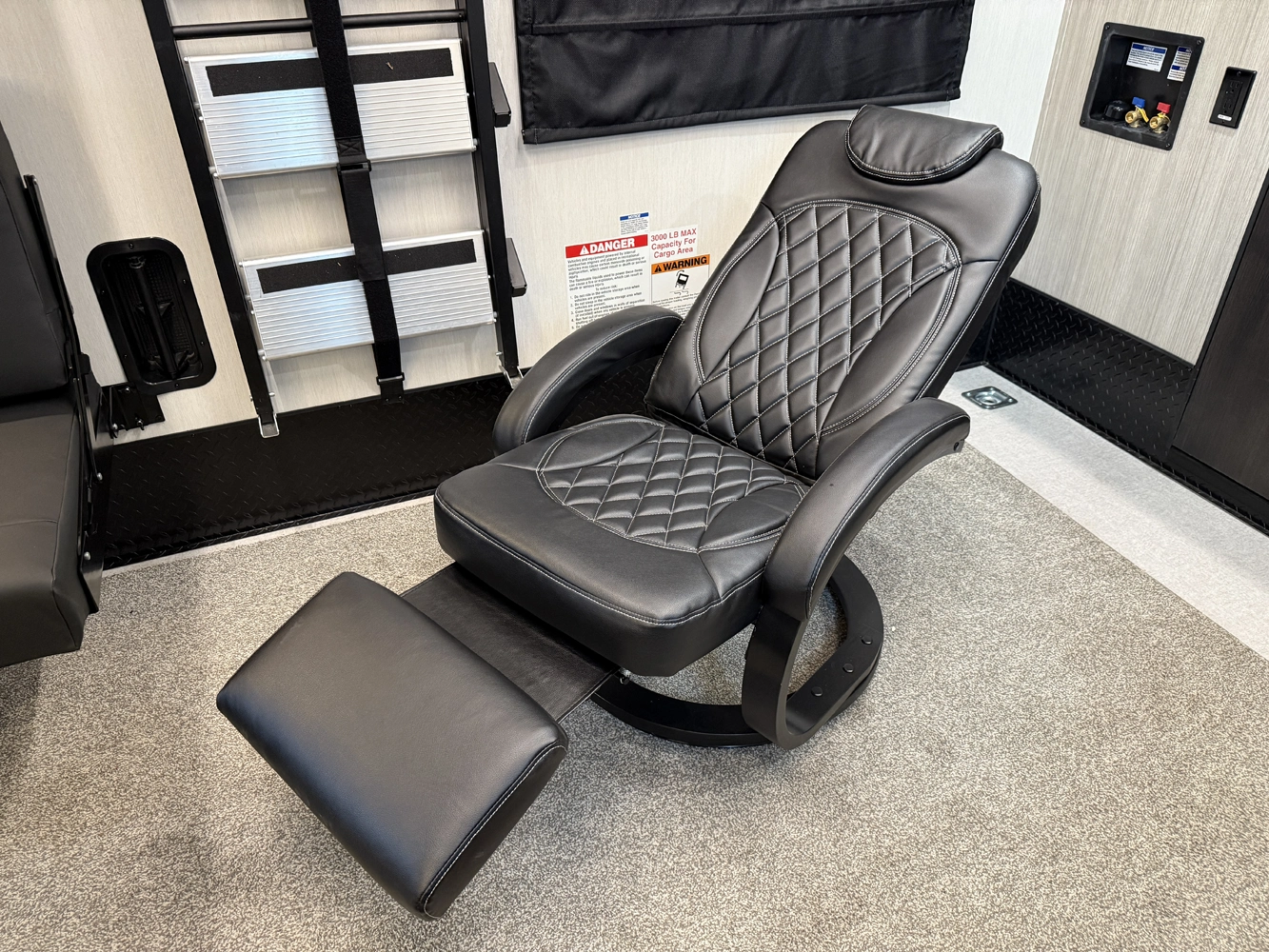 • Garage Family Room Pkg: Two Euro Recliners, Bound Removable Rug, Flastscreen TV
