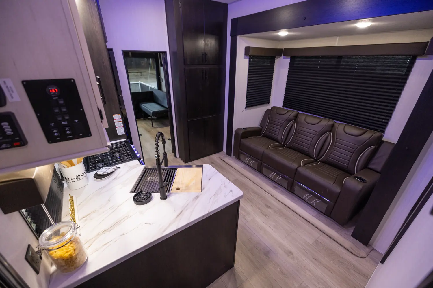 Looking for a national park friendly 5th wheel that has a cargo garage and patio deck? The Rogue 323SUT by Forest River is smartly engineered with a 34ft 11in overall length and doesn't lack on amenities. Inside you'll find a king bed, full bathroom, well-equipped kitchen, cozy living area and multi-functional garage space. The ramp door makes for easy cargo loading and doubles as a patio deck for enjoying sunny days. You're also off grid ready with a 30-gal fuel station and generator prep!