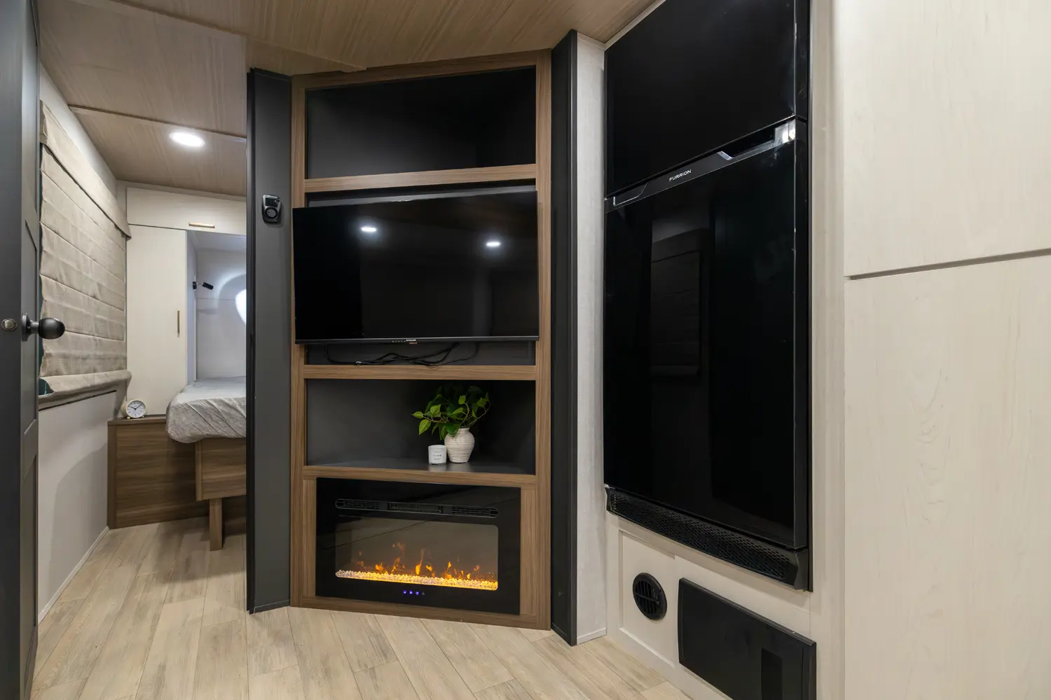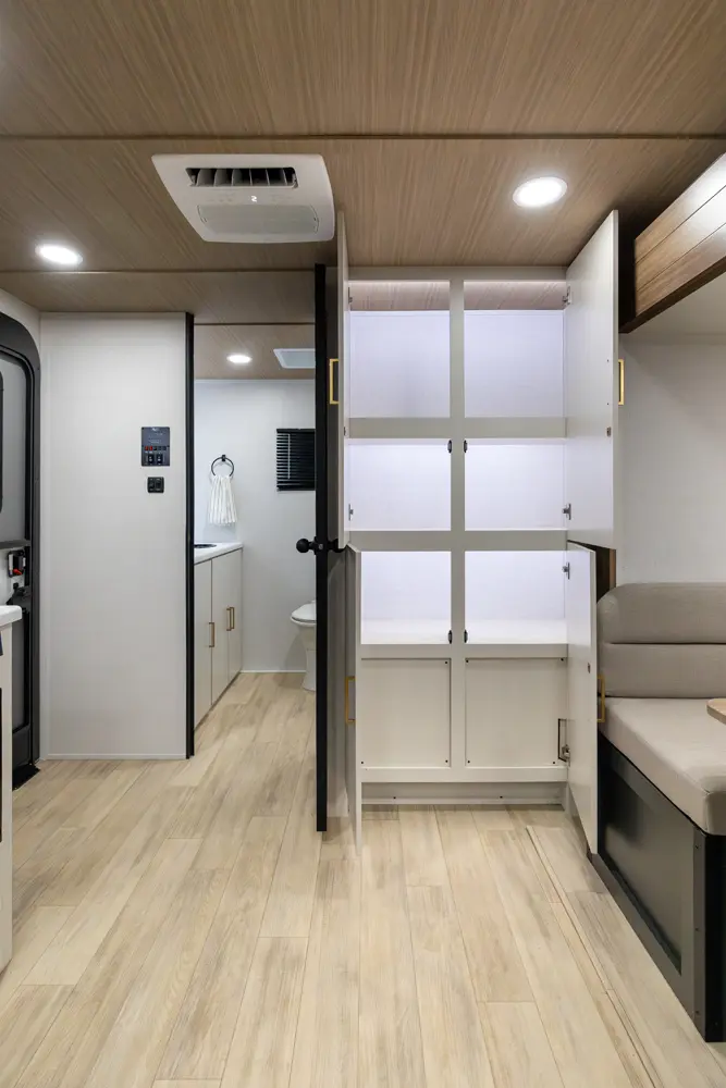 • True Flush Floor Slideouts with Fabric-Backed Shaw Linoleum