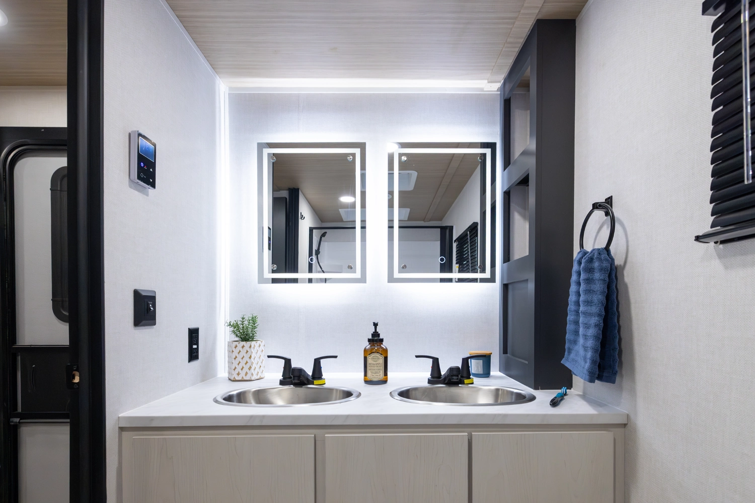 • Universal Docking Station Enclosed in Cargo Storage - Hookups Included: Cable & Satellite Switch, Fresh-Tank Gravity Fill, City Water, Black Tank Flush, Winterization Pump, Outdoor Shower, GFI Outlet, And Space Prepped for Solar Panel Controller