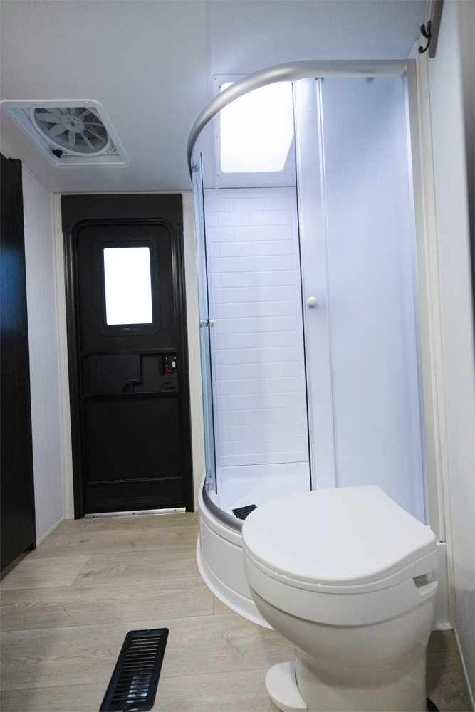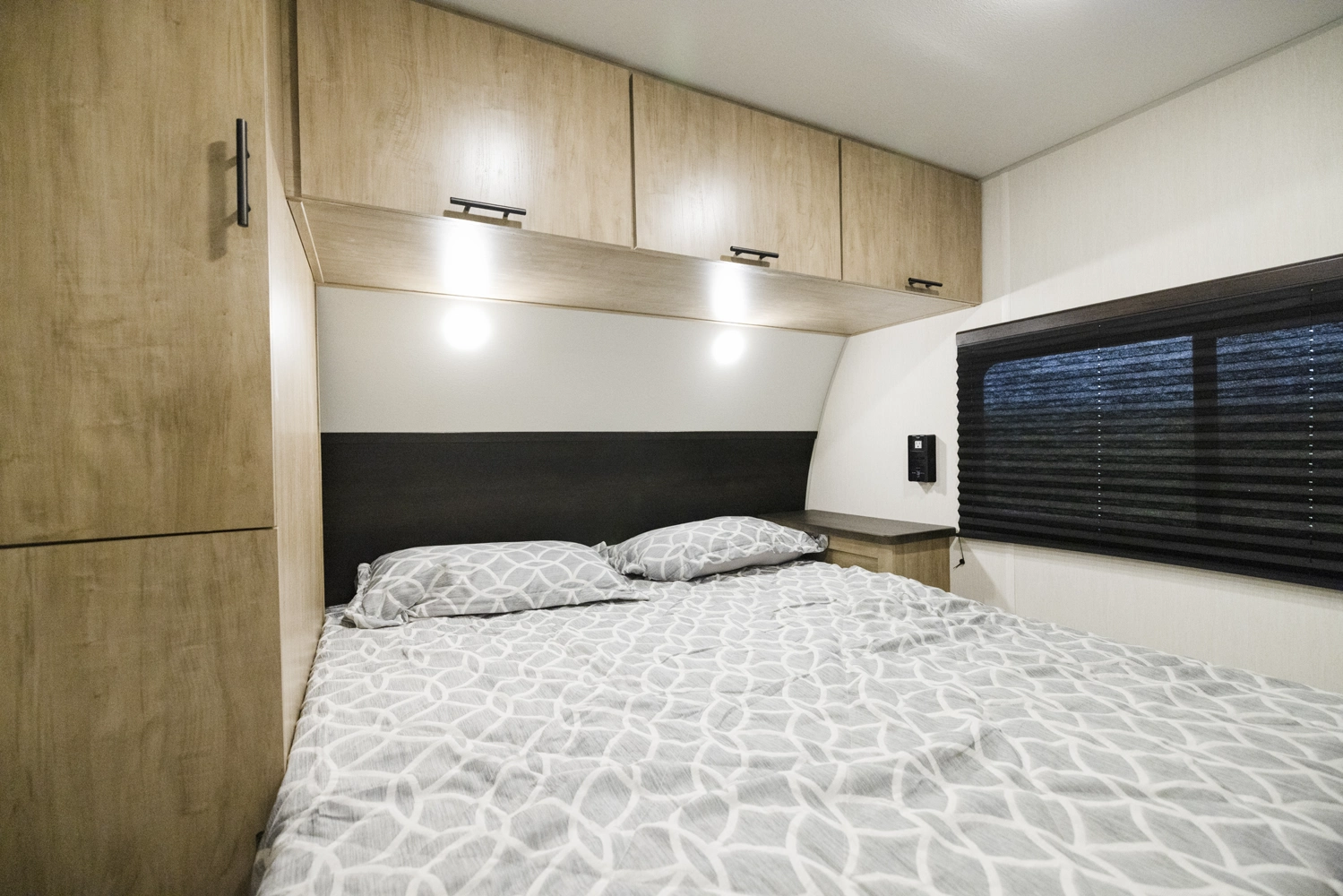 This innovative model lets the customer escape the ordinary with this 3 bedroom model. What separates the 294GEBG from the rest is the rear sleeping areas where a full queen loft bed is featured along with a private bunk area off to the side. This separation created privacy and allows for a Full Bar and Grill featuring an exclusive side-by-side refrigerator and freezer, ice maker, pull-out cooktop, sink and large storage areas.